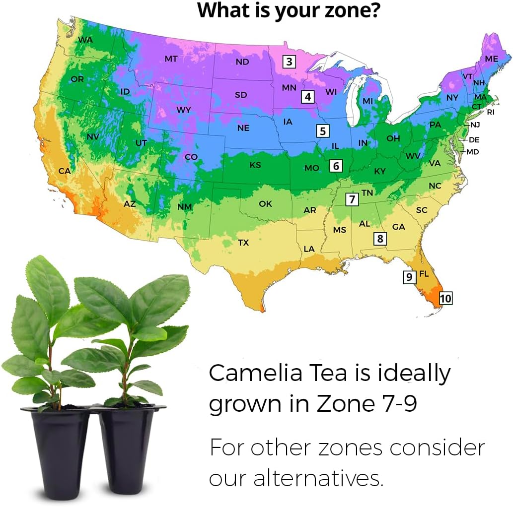 Camelia Tea Plant (4 Pack) | Real Live Plant for Sale | Perfect for Tea Lovers | Hardy and Easy to Grow for Planting | Grow Organic Tea Leaves at Home | Great for Indoor or Outdoor Gardens