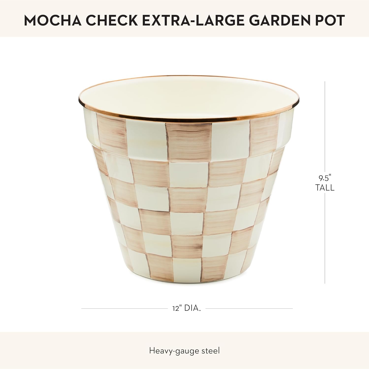 MACKENZIE-CHILDS Enamel Garden Pot, Decorative Pot for Plants, Outdoor Flowerpot Decor, Extra Large, Brown-and-White Mocha Check