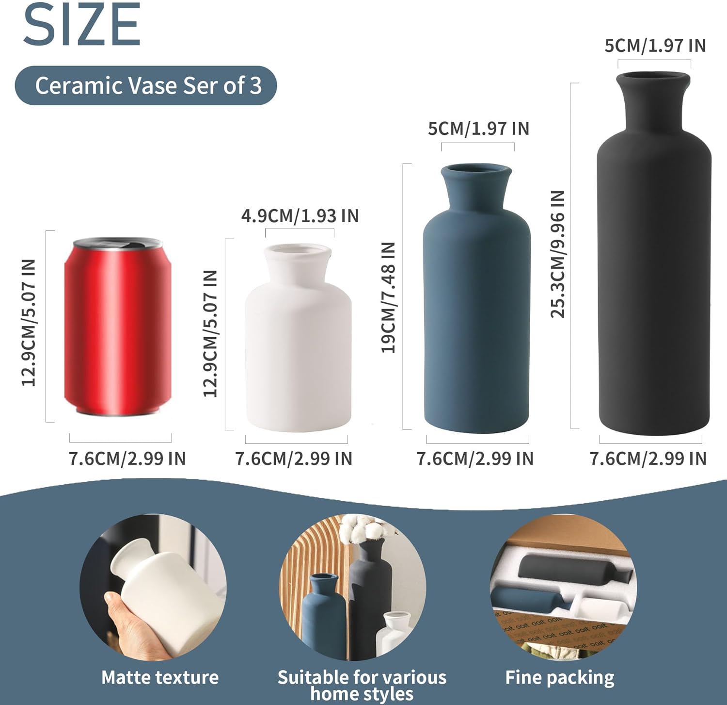 - 【Home Decor Ceramic Vases】More than vases, they are wonderful home decor. This set of ceramic vases is perfect for artificial flowers or fresh flowers and plants, can be placed individually or in combination, as a room decor, home decor, living room decor, farmhouse decor, table decor, bookshelf decor,entryway decor, kitchen decor, boho decor, house decor, office decor,shelf decor and more.