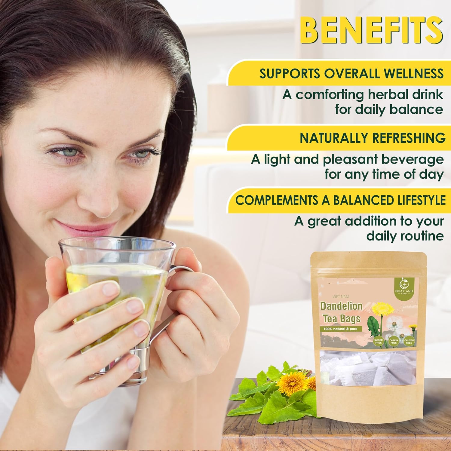 NHAT ANH FARM - Premium Dandelion Tea Bags, 40 Tea Bags, 100% Natural Dried Dandelion Leaves, Naturally Sweet Herbal Tea, Sugar-Free, Caffeine-Free, No Additives.