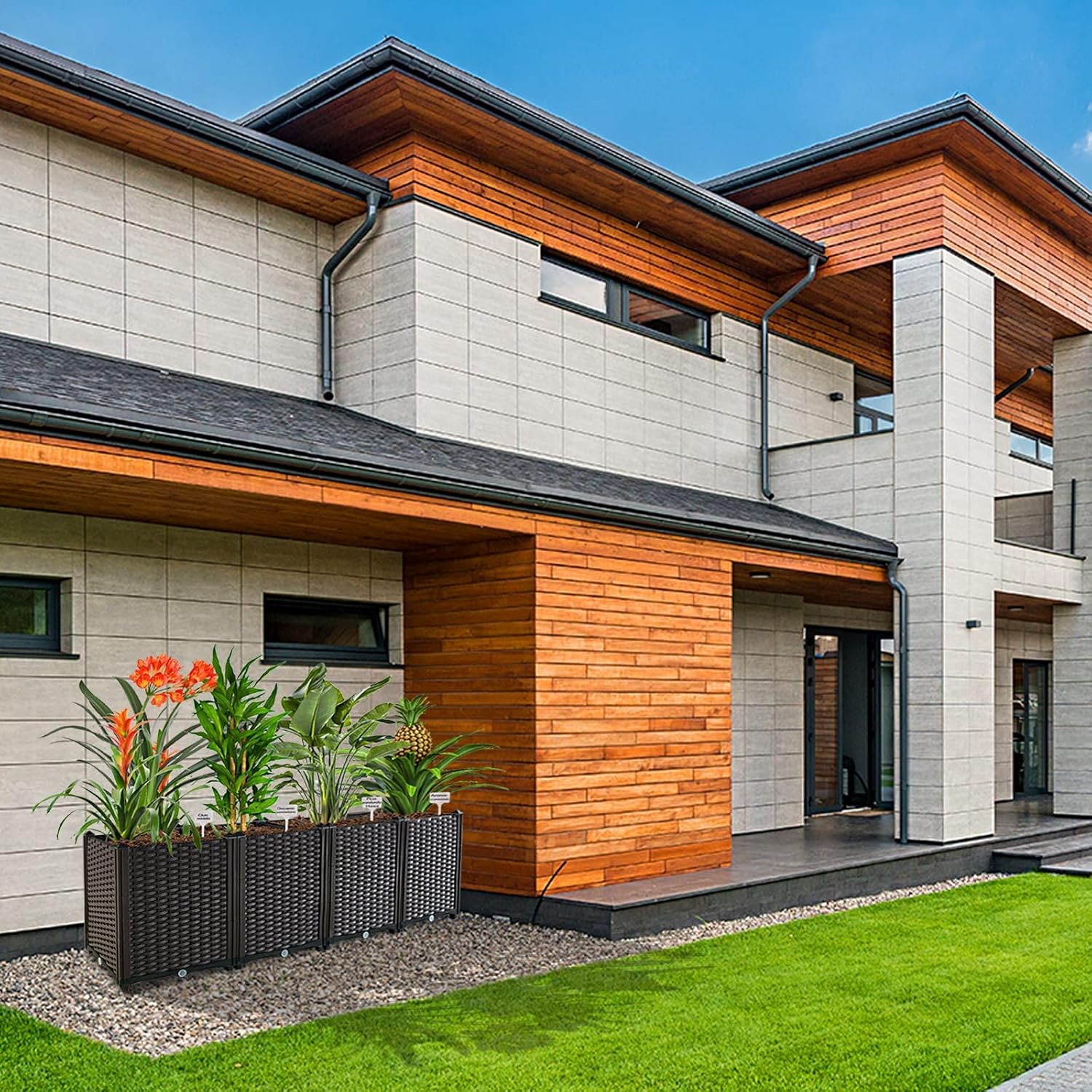 - 【Watering System with Reservoir】:The flower box features self-watering disk & drainage holes, can provide water reservation spaces to avoid plants over-drying when forget to water for some time. Drainage holes will effectively drain out excess water, preventing roots from decay.
