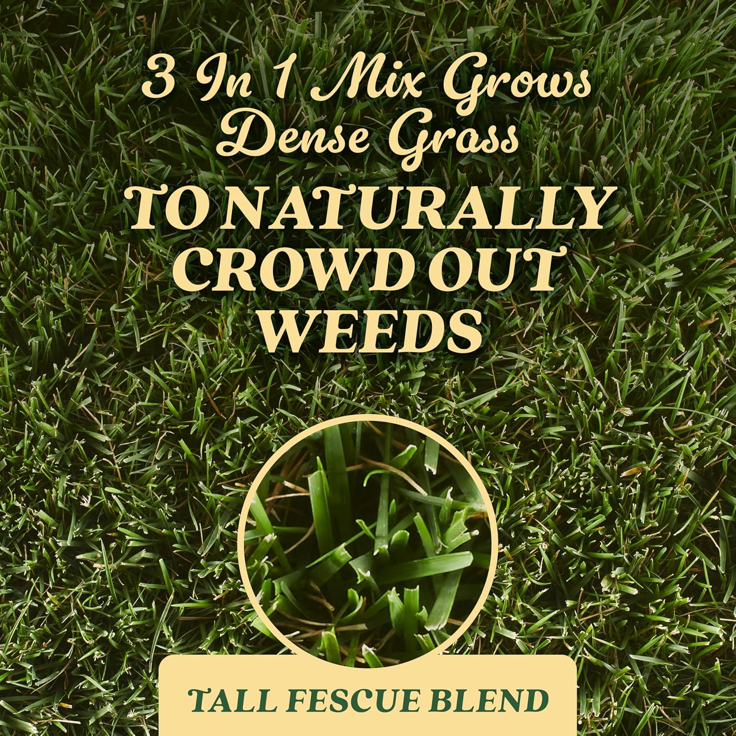 - Designed for Northern and transition region lawns, our 3-in-1 grass seed, fertilizer and soil improver is crafted with hand-selected varieties of Tall Fescue seed grown in Oregon, and paired with Natural Grass Food and soil-improving clay