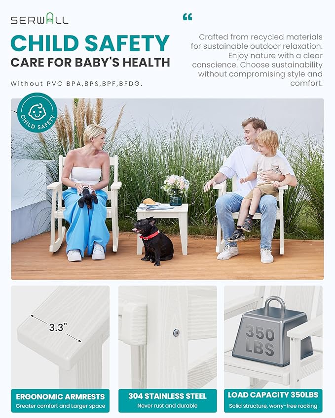 - Smooth Rocking: Enjoy complete relaxation with the SERWALL patio bistro set. Its ergonomic design offers a comfortable and safe rocking experience. This rocking bistro set is perfect for enjoying serene outdoor moments.