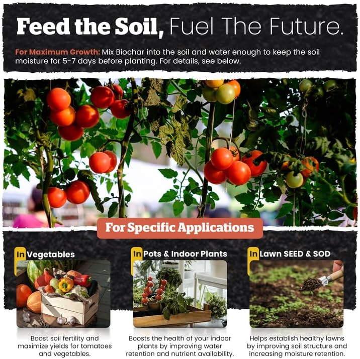 - Enhanced Root Health and Nutrient Absorption: Formulated as a powerful soil amendment and effective soil conditioner, this advanced biochar blend supports healthy microbial ecosystems for optimized nutrient uptake and improved aeration. Whether you're cultivating hardy vegetables or delicate herbs, it strengthens root development and enhances long-term fertility. Perfect for gardeners looking to elevate top soil for garden quality or enrich topsoil for vegetable garden beds.