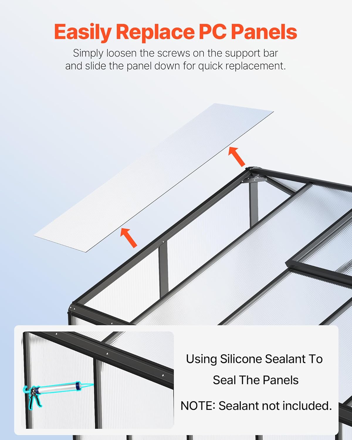 - PC panels Protection: Polycarbonate greenhouse panels with UV protection and impact resistance effectively protect against hail, strong winds under 5 levels, helping plants grow healthily. Our PC panels are easier to replace. Note: In windy or snowy weather, ensure doors and windows are closed to prevent the greenhouse from tipping over due to strong wind.