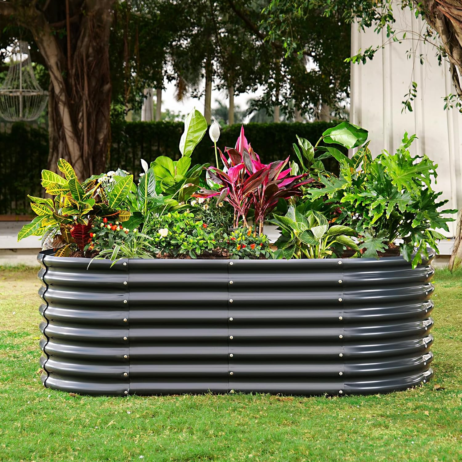 Land Guard 24“ Tall Galvanized Raised Garden Bed Kit, Galvanized Planter Garden Boxes Outdoor, Oval Large Metal Raised Garden Bed for Vegetables (Dark Gray, 4×2×2ft)