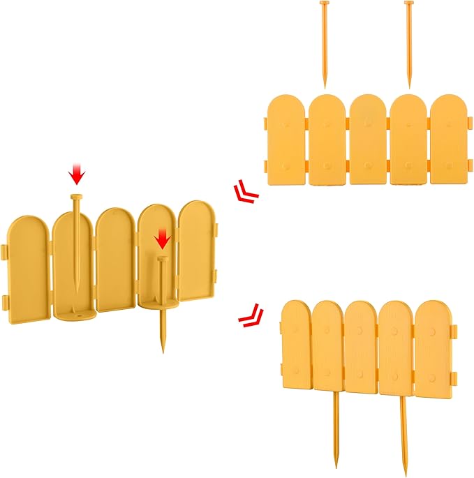 - 🌹 Easy Installation and Flexible Design: To install, simply insert the spikes at the bottom of each panel and push it into the desired position. Easily link panels at the ends to create a straight edge, or turn them 90 degrees to form corners. For tough or hard soil, use a soft-faced hammer for easier installation. Available in brown, green, timber, and white colors to complement your garden's style.