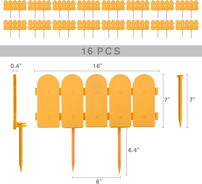 - 🌻 Panel Dimensions and Coverage: Each garden edging panel measures 16" in length, 7" in height, and **2/5" in thickness, with two spikes placed 6" apart and 6.4" deep. This set includes 16 panels, covering a total distance of 20 feet, making it an ideal solution for creating beautiful, organized borders around your garden.