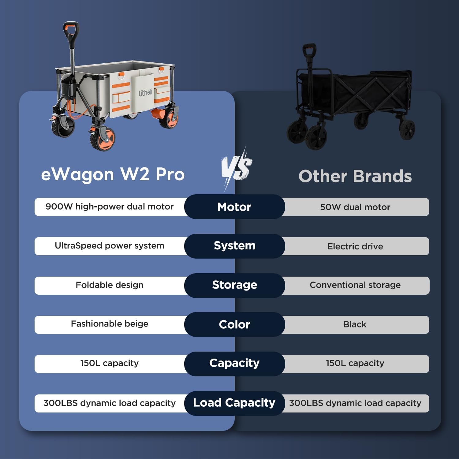 - [Powerful Motor and Load Capacity] This electric folding cart is equipped with a 900W dual motor, which is powerful and easy to handle various road conditions. The entire machine weighs only 28.88 pounds, making it lightweight and easy to carry, with a load capacity of 200 pounds, meeting advanced demands. The 150-liter storage space can accommodate tents, backpacks, picnic supplies, etc., to meet the needs of outdoor travel.