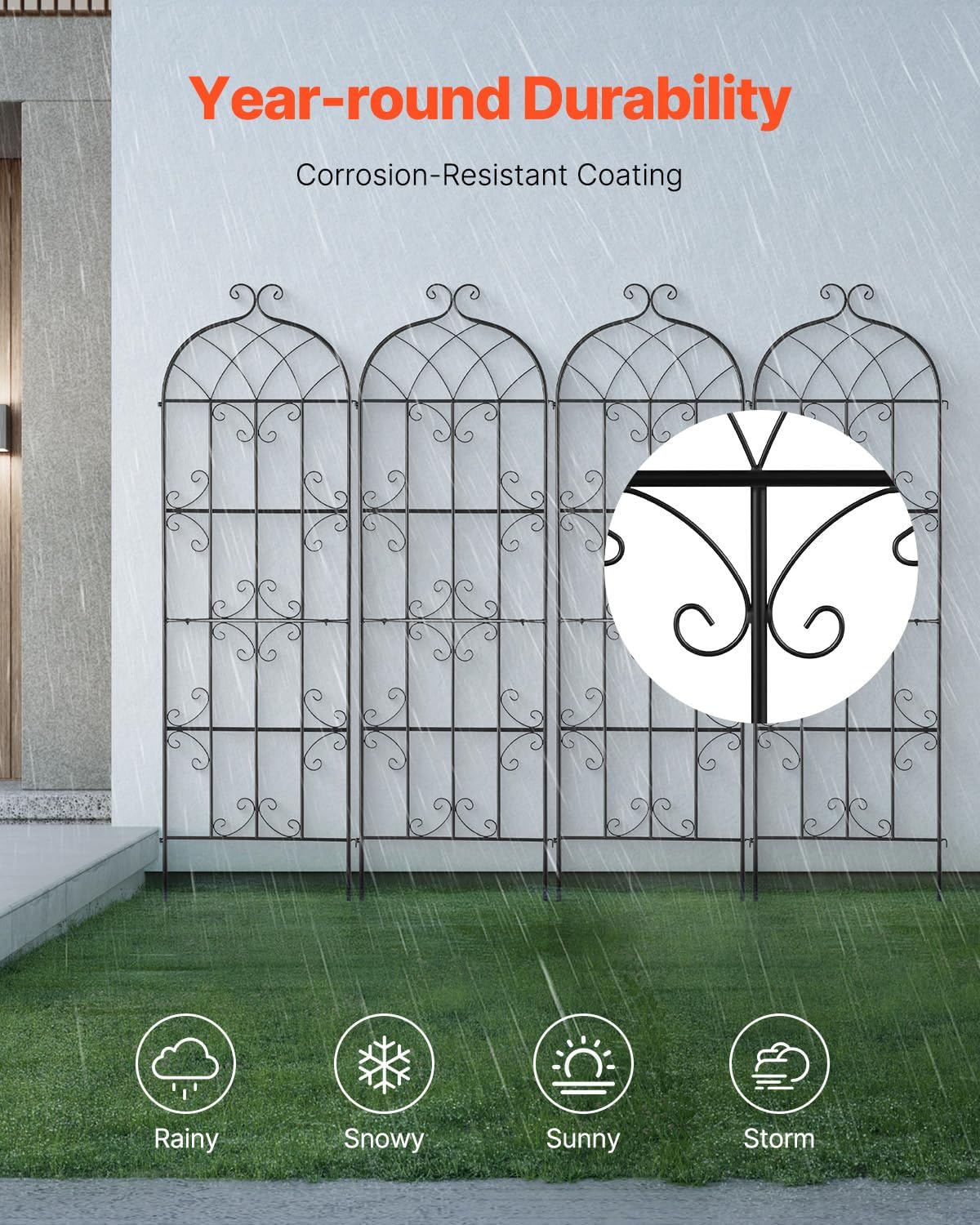 VEVOR 71 x 20 in, 4 Packs Rustproof Metal Garden Flower Trellis, Outdoor Climbing Rose & Cucumber Support, Decorative Clematis Trellis for Courtyards & Lawns
