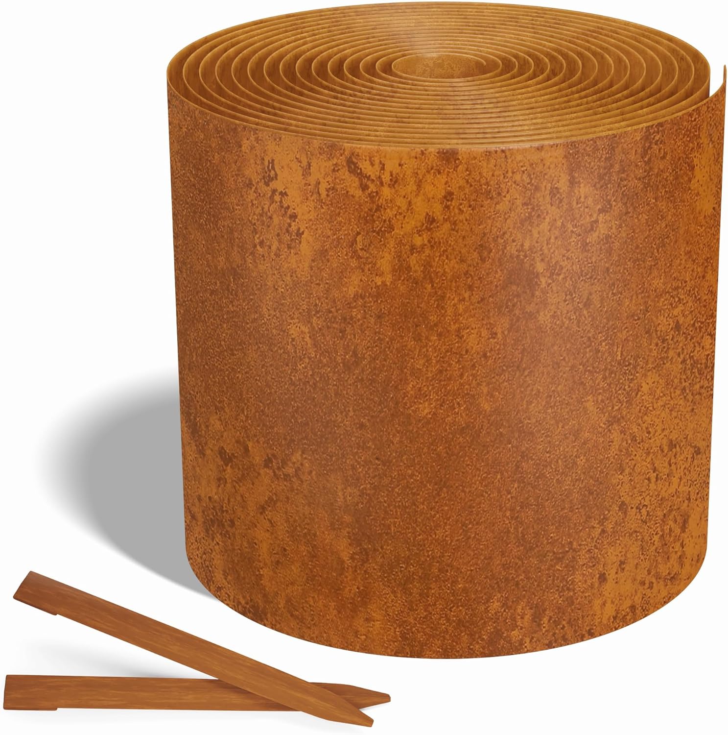 - HIGH-QUALITY MATERIAL: The garden edging is made of galvanized steel, sturdy and durable. The surface adopts rust-like design, which adds a retro feel and enhances the overall appearance of the landscape. Single stakes size: 11.97×0.79 inch.