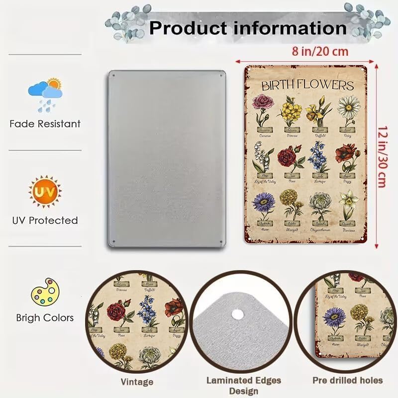 Bestylez Garden Gifts Vintage Gardening Signs Mom Grandma Birth Month Flower Tin Sign for Home Garden Greenhouse Living Room Bedroom Yard Cottage Outdoor Decor 8X12 Inch (3355)