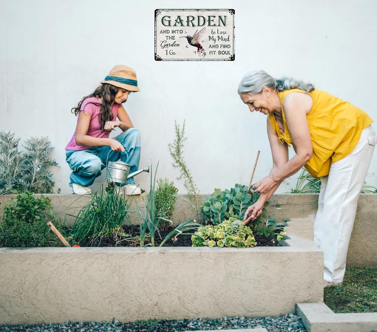 Bestylez Gardening Gifts Vintage Gardening Signs Into The Garden To Lose My Mind Tin Sign for Home Garden Greenhouse Living Room Bedroom Yard Cottage Outdoor Decor 8X12 Inch (3358)