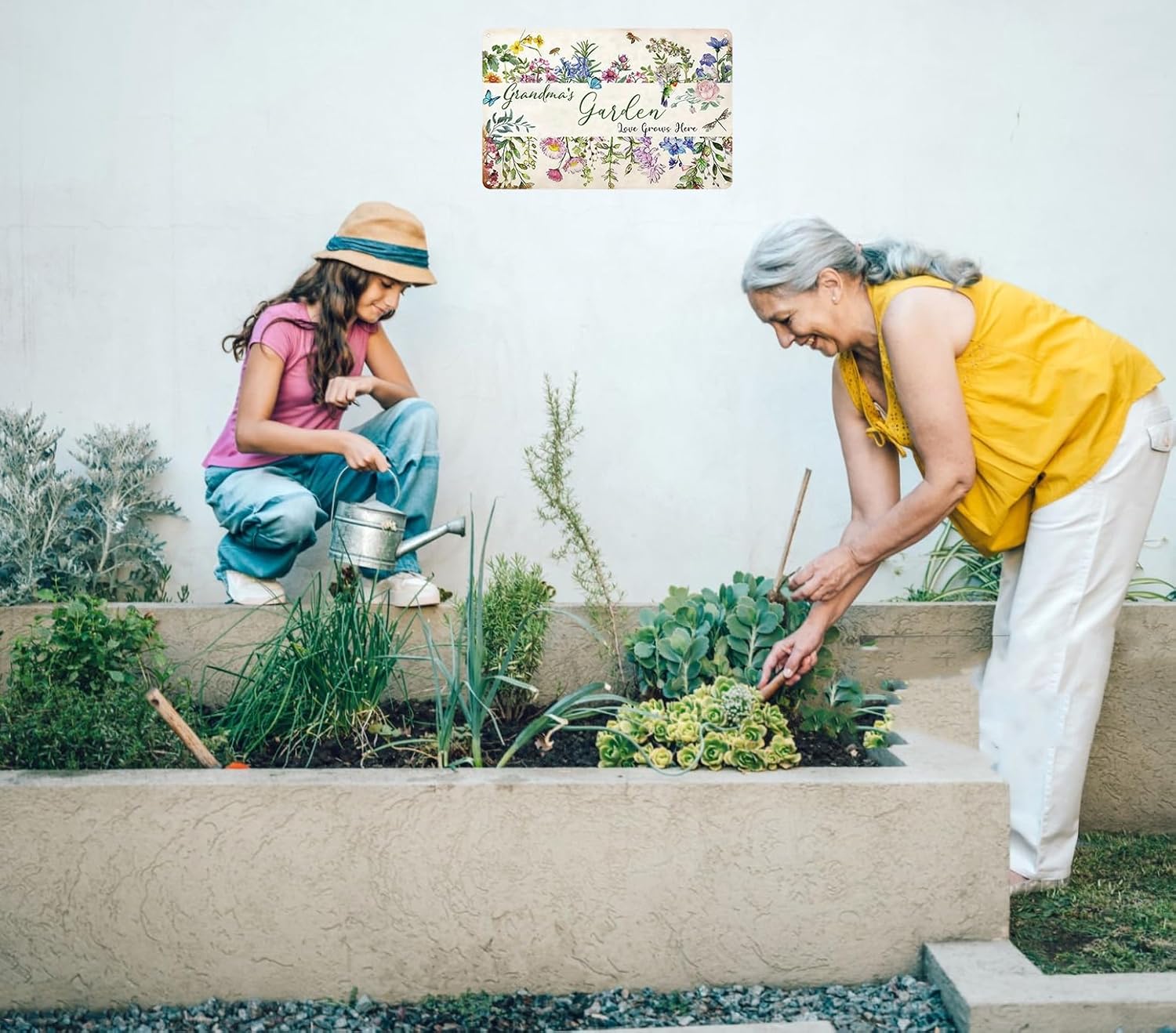 Bestylez Gardening Gifts Vintage Gardening Signs Grandma‘s Garden Love Grows Here Tin Sign for Home Garden Greenhouse Living Room Bedroom Yard Cottage Outdoor Decor 8X12 Inch (3356)