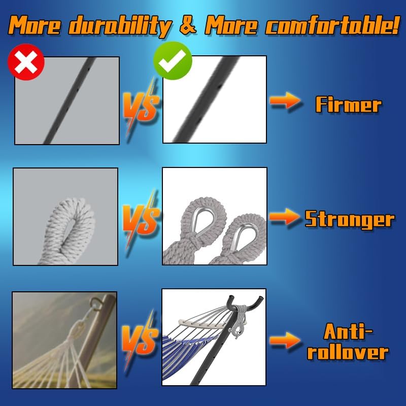 - 【Large Size & Weight-Bearing】 : ANAGOO hammock with stand adopts a reinforced design, double hammock maximum load capacity up to 500LBS, multiple people share no pressure.