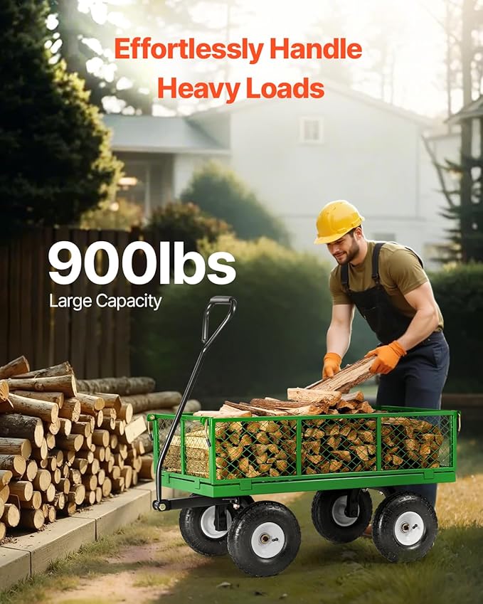 - 900-lb Load Capacity: This garden cart is specially designed for transporting heavy items with ease. Whether you're moving soil, stones, or heavy tools, its 900-lb capacity allows you to carry everything in one trip, reducing back-and-forth effort and making your tasks more efficient and hassle-free.