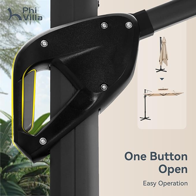 - Hydraulic Opening Design: Unique design with Hydraulic Opening and 360-degree rotation for patio umbrella is flexible against to all day’s sunlight, protect you from the sun and keep cool and comfortable