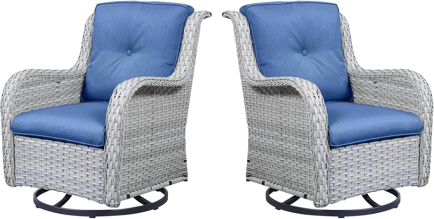 Outdoor Swivel Rcoker Patio Chairs - Outdoor Swivel Patio Chairs Set of 2 Wicker Chair Patio Furniture Sets with Covered Cushion for Porch Deck Balcony Garden, Blue Cushion