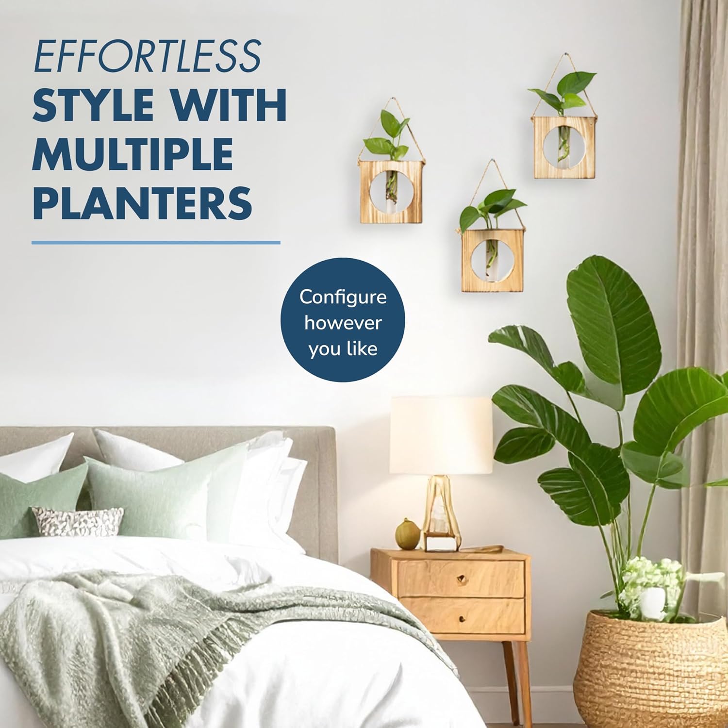 - Crafted from Natural Materials: Made from natural wood and glass, these propagated plant holders add a warm, organic touch to any room for a softer, greener, and more relaxing feel.