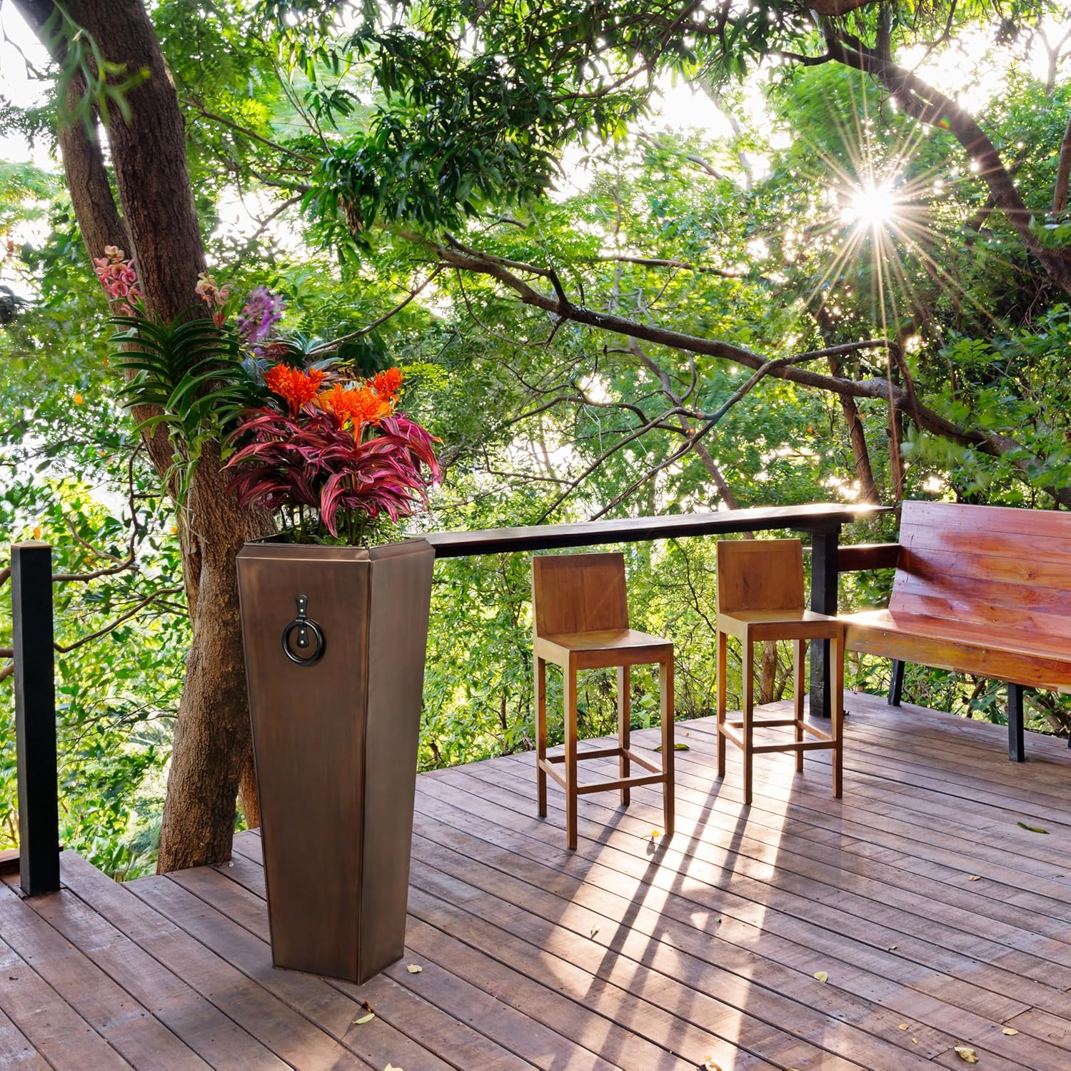 - Beautiful Copper Planter: Ready to be the new dynamic accent in your home and garden this large garden planter stands at 35 inches high and is 12 inches square at its widest and tapers to 8 inches square at the base.