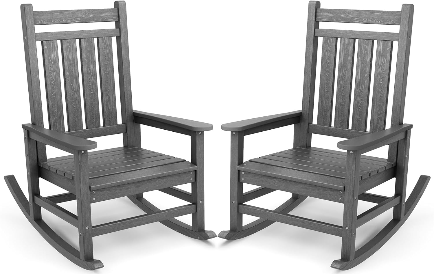 SERWALL Oversized Outdoor Rocking Chair Set of 2, HDPE Rocker for Adults, Patio Rocking Chairs for Porch, Grey