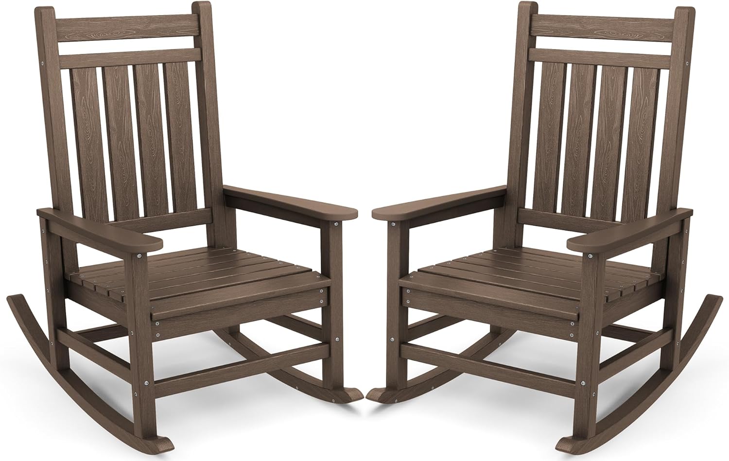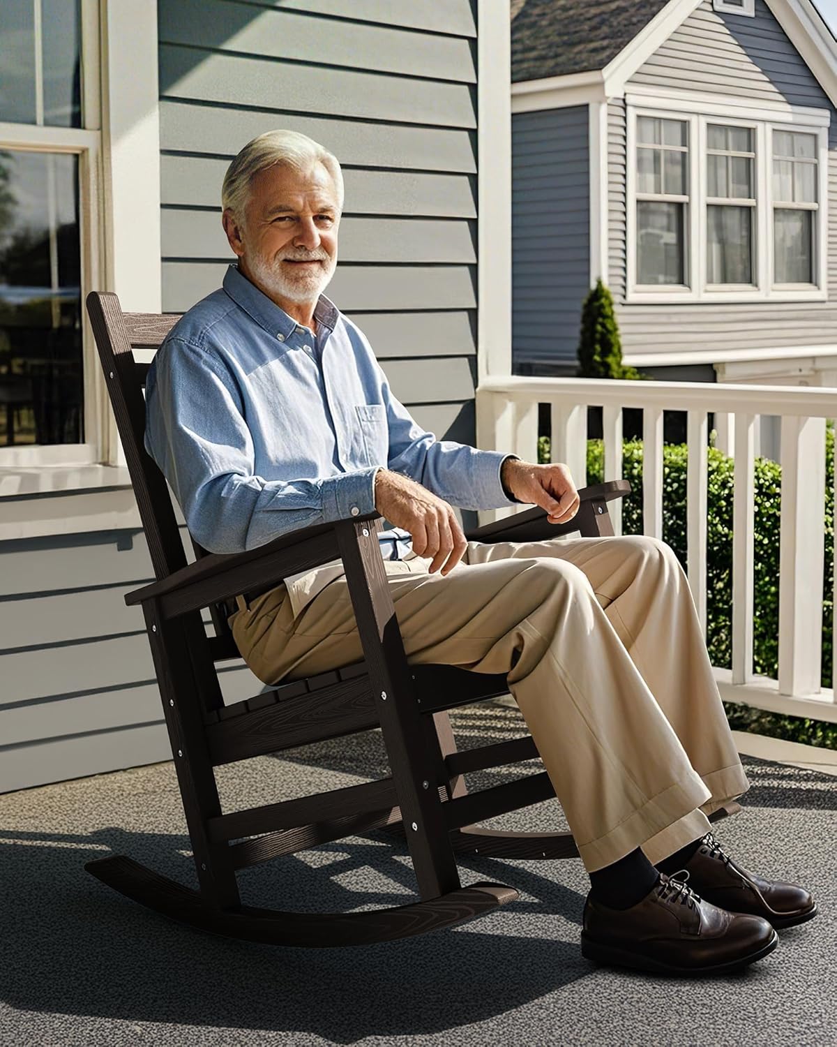 - Indoor & Outdoor Use: The wood-grain HDPE design transitions seamlessly between indoor and outdoor spaces, making this stylish outdoor rocking chair perfect for patios or living rooms.