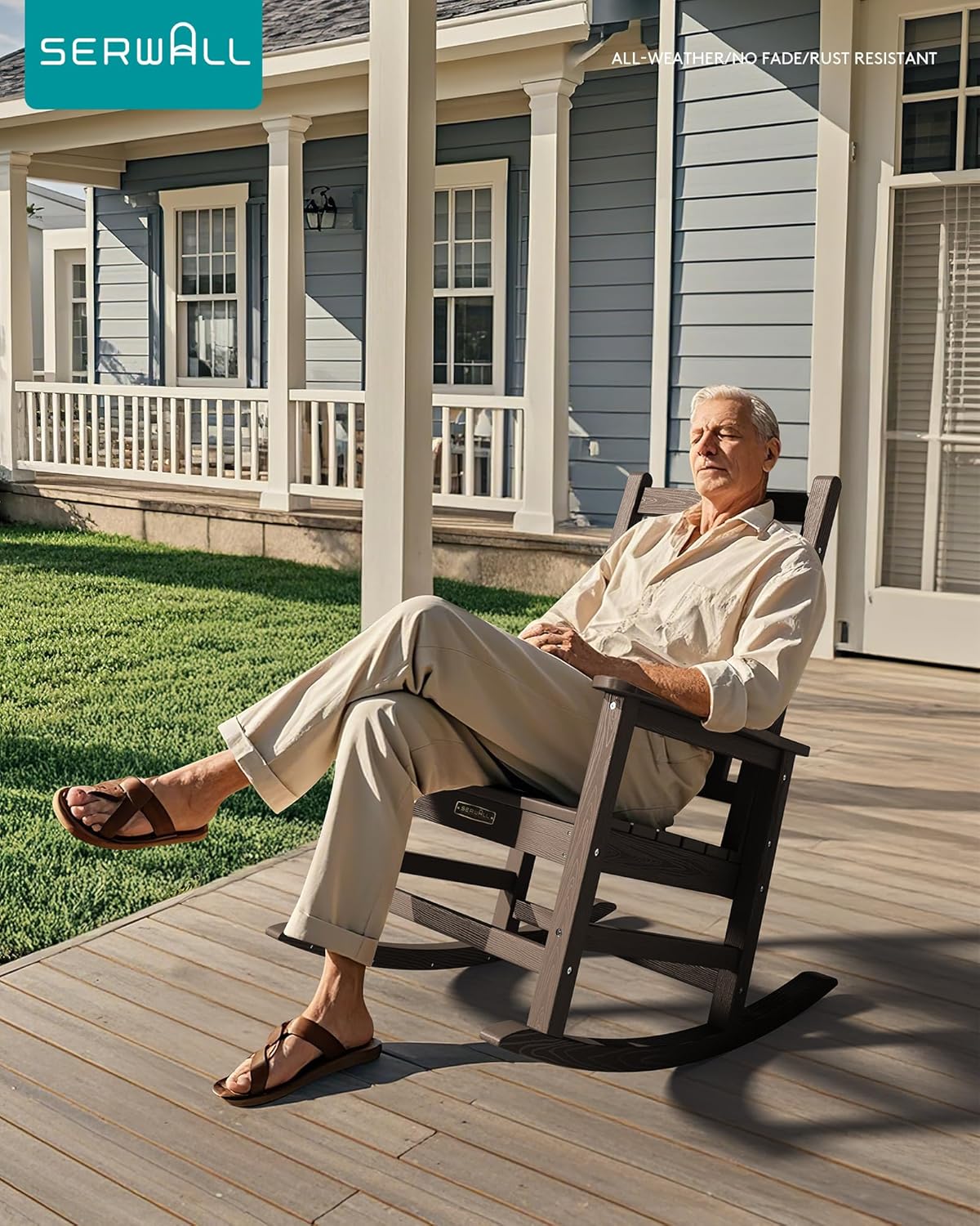 - 30-Mins Installation: Your SERWALL porch rocking chair requires just 30 minutes to assemble with included hardware and instructions. An online video guide is available for this patio rocking chair.(Note: For best results with your outdoor rocking chair, fully tighten screws only after complete assembly.)
