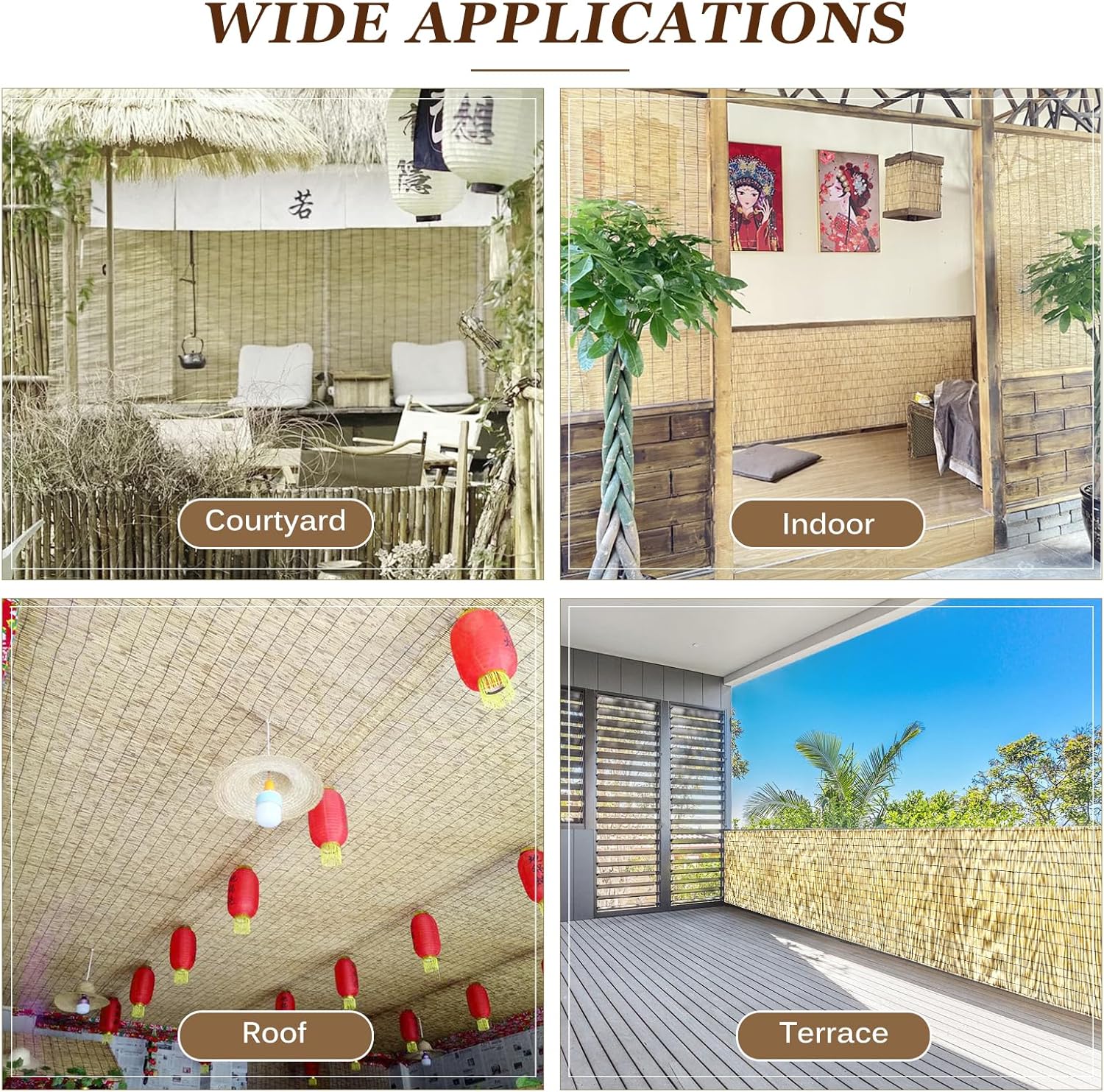 - 【Pure Natural Material 】 The screen curtains are carefully selected natural material. The natural characteristics of the product are preserved. Our screen are well heat-treated and woven with cotton threads to make the reed fence more tightly woven, the reeds are naturally waterproof and can be used for many years to ensure stability in long-term use