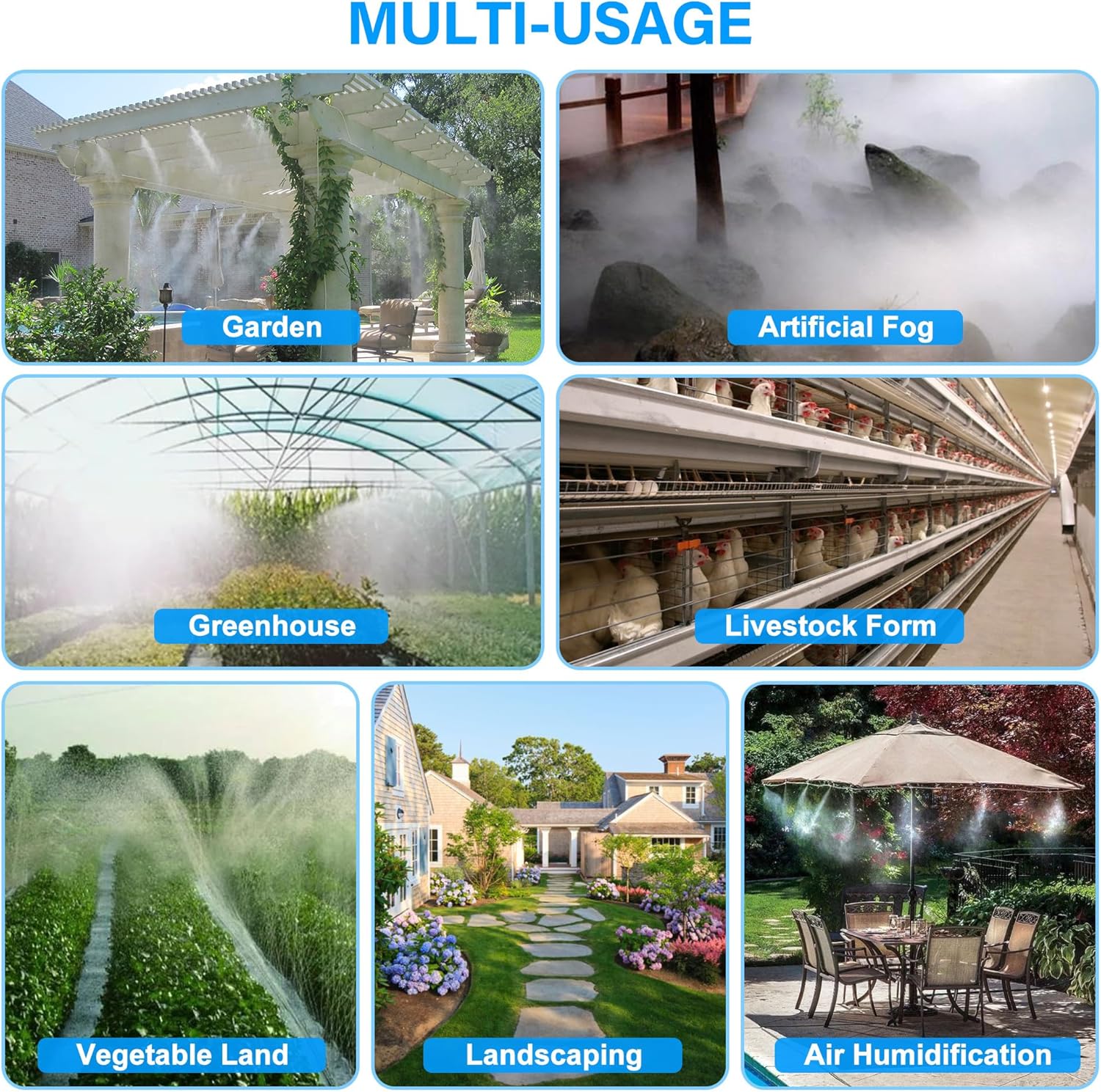 - Wide Application: These High Pressure Mist Nozzles are suitable for nozzles with standard 10/24 UNC threads (3/16 "threads), and are widely used in agricultural production, lawn, home gardening, terraces, terraces, roof cooling, balcony cooling, plant watering, greenhouse vegetables and humidification, irrigation and other indoor and outdoor environments. They help to cool the air and are widely used in the cooling spray system of outdoor botanical garden terrace greenhouse.