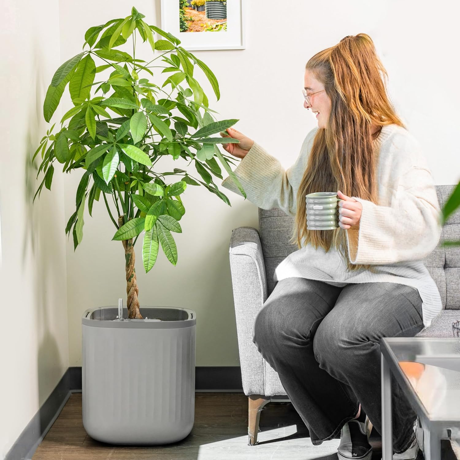 Vego garden Self Watering Pots Home Planters with Water Gauge for Effortless Indoor Plants Fog Gray