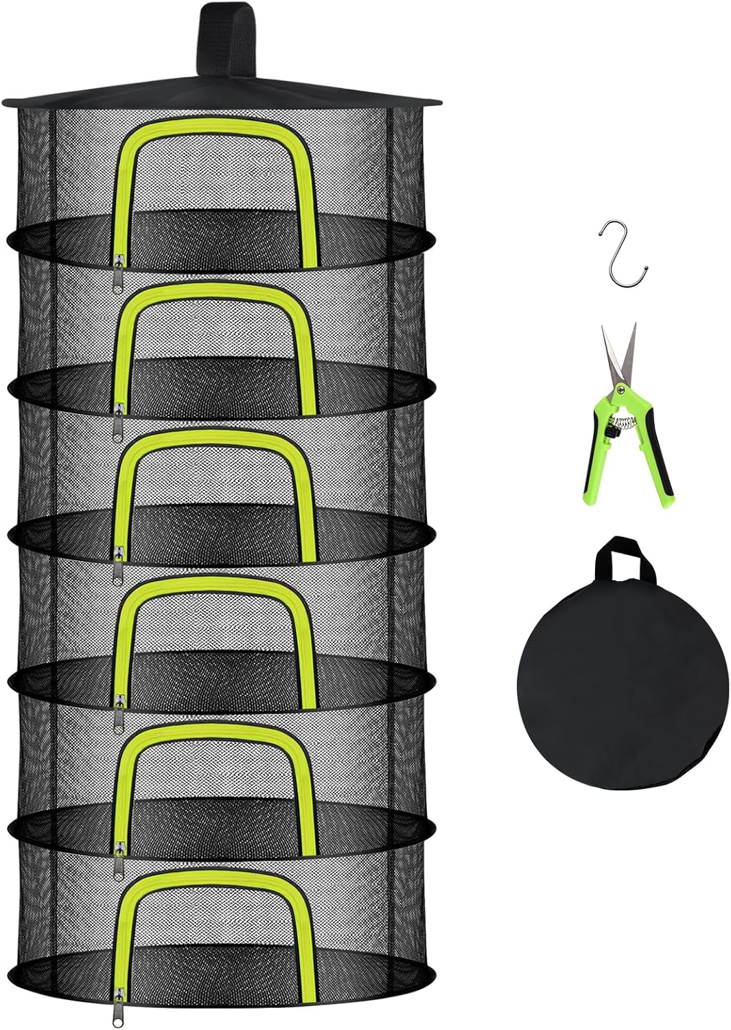 6 Layer Herb Drying Rack, Herb Drying Rack Hanging Mesh, Foldable Plant Drying Net With U-Shaped Zipper, Garden Shears, Hooks, For Drying Herbs Plants, Flowers, Fruits, Food, Clothes(6 Layers-23.62'')