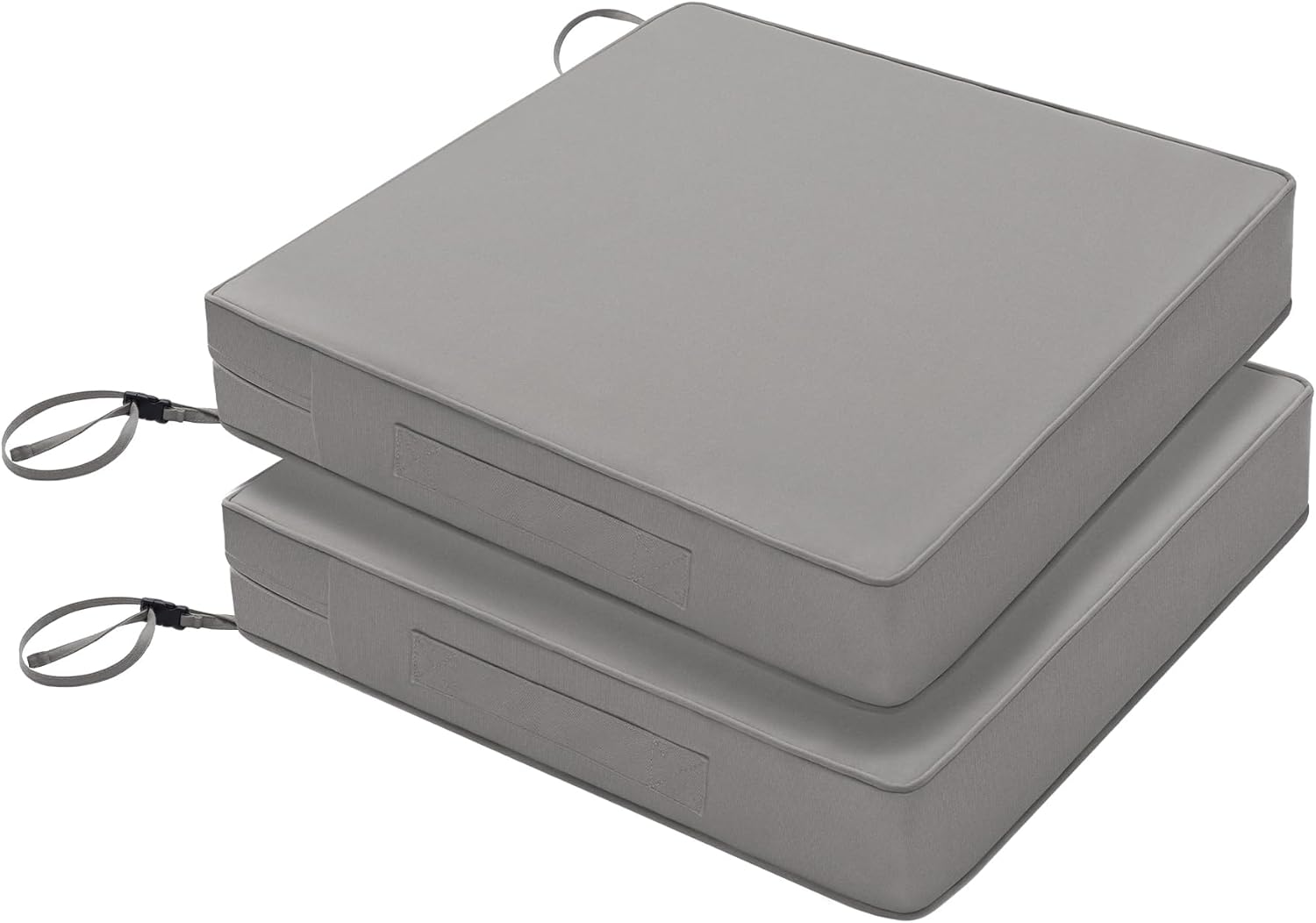 Favoyard Patio Chair Cushions 20 x 20 x 3 Inch Waterproof Outdoor Seat Cushions for Patio Furniture 3-Year Color Fastness Garden Sofa Couch Chair Pads with Handle & Adjustable Straps Set of 2, Grey