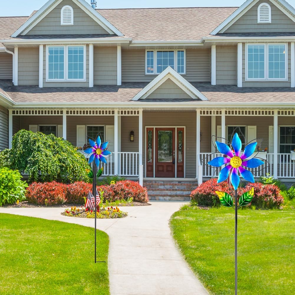 - Year-Round Garden Decor: The wind spinners outdoor are made of weather-resistant metal material, sturdy and durable. The surface is sprayed with protective coating, rust-proof waterproof, can withstands most weather conditions, makeing these flowers provide constant beauty