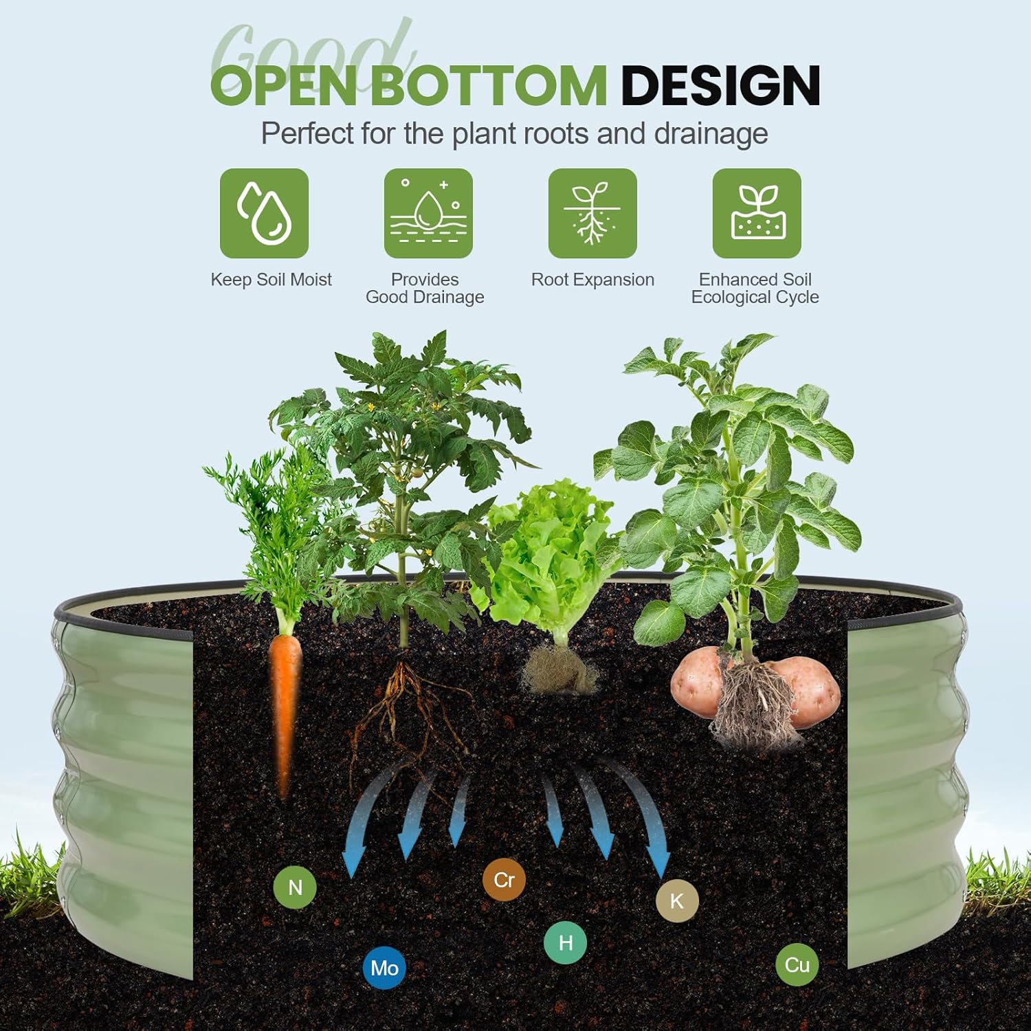 G GOOD GAIN Round Raised Garden Bed - 2Pcs 3x3x1ft Galvanized Steel Planter Boxes Outdoor with Rubber Edge Trim | Metal Raised Beds for Gardening Vegetables Flowers Fruits Herbs (Olive Green)