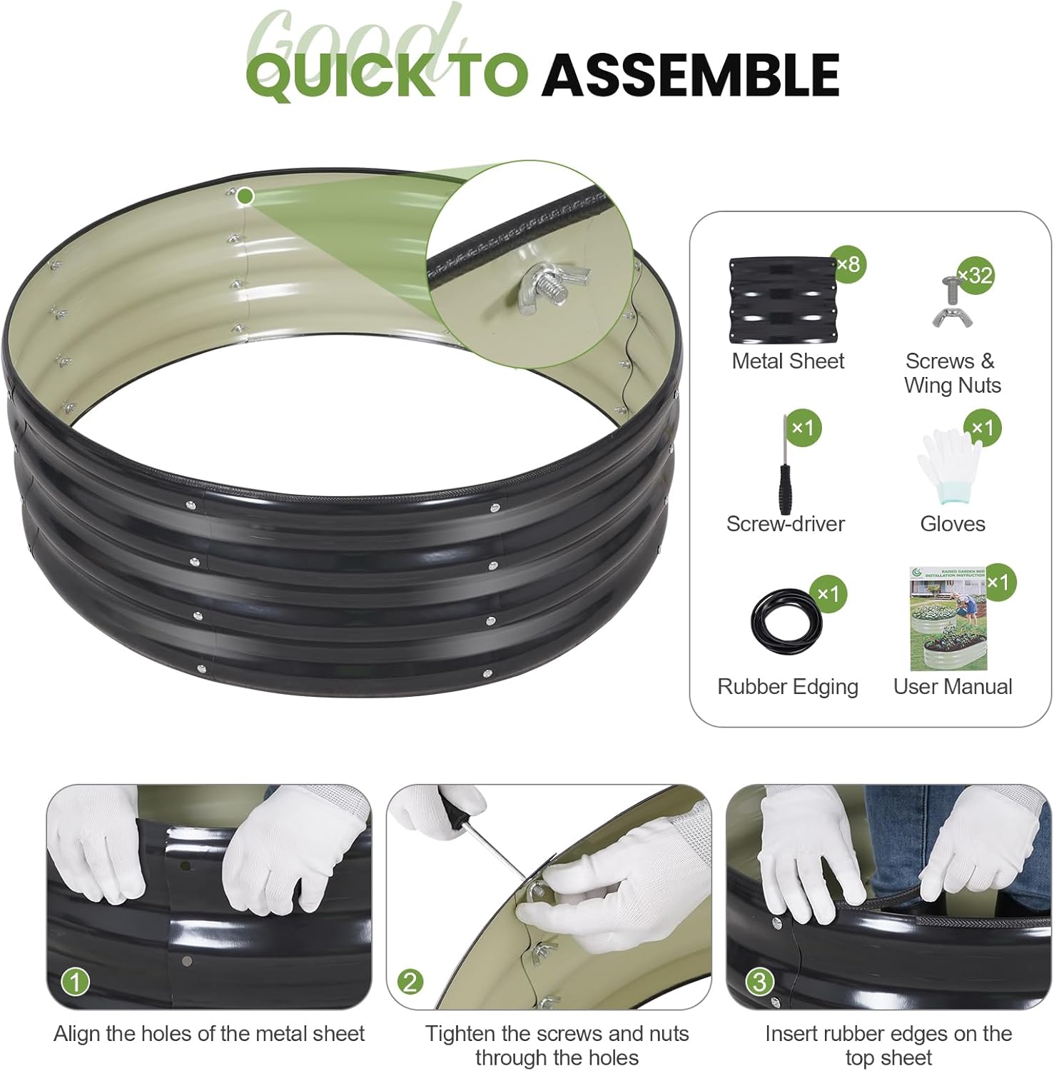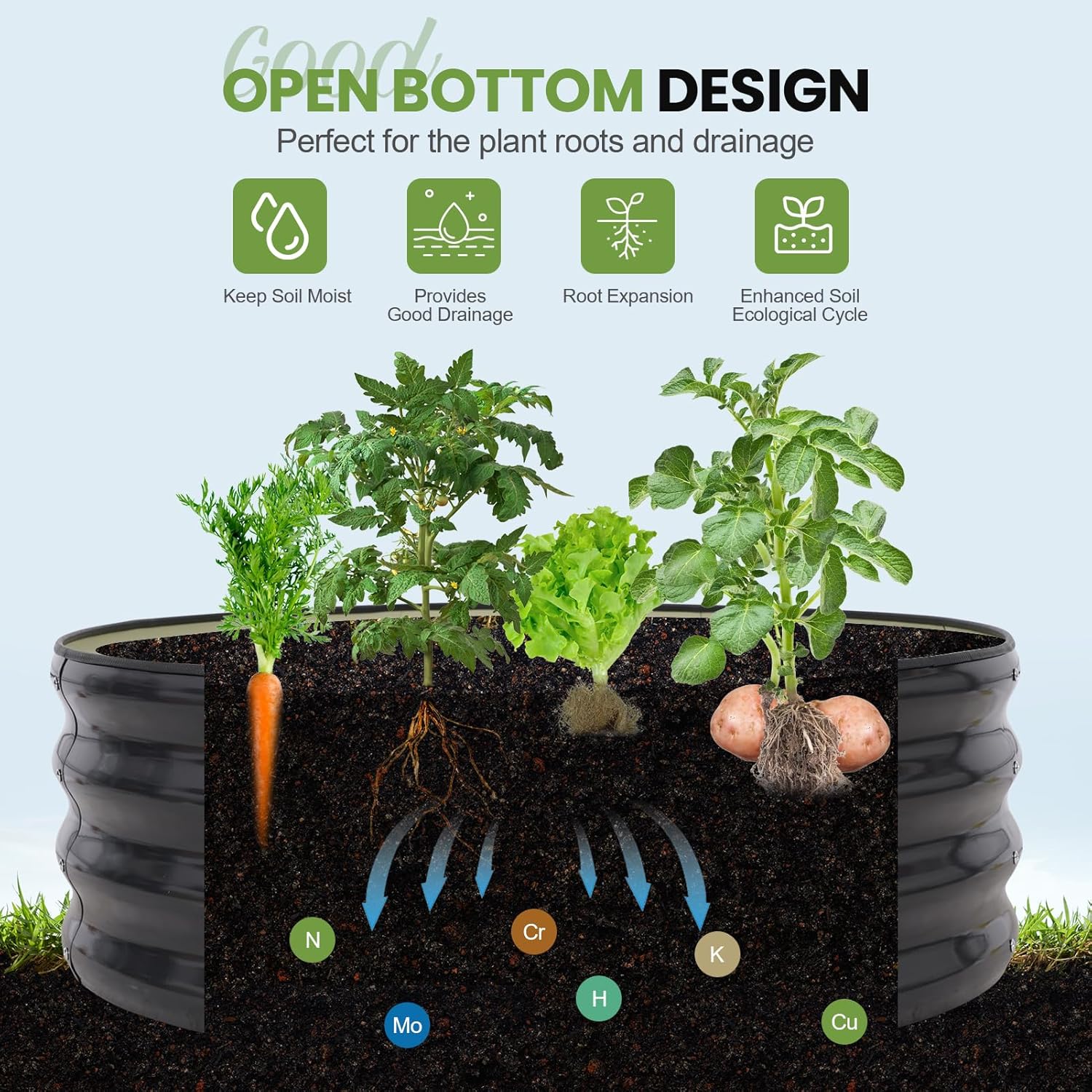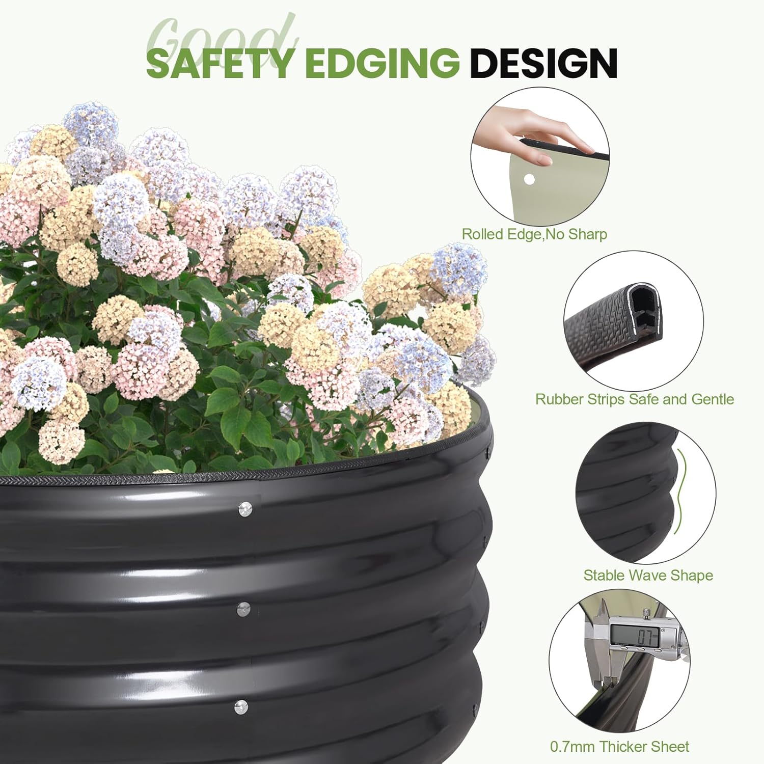 - 【Widely Used】 The outdoor raised planting beds measure 3ft (L) x 3ft (W) x 1ft (H), provide ample growing space for vegetables, flowers, fruits and other plants. The round design looks elegant and complement any outdoor setting - perfect for patios, courtyards, or lawns.