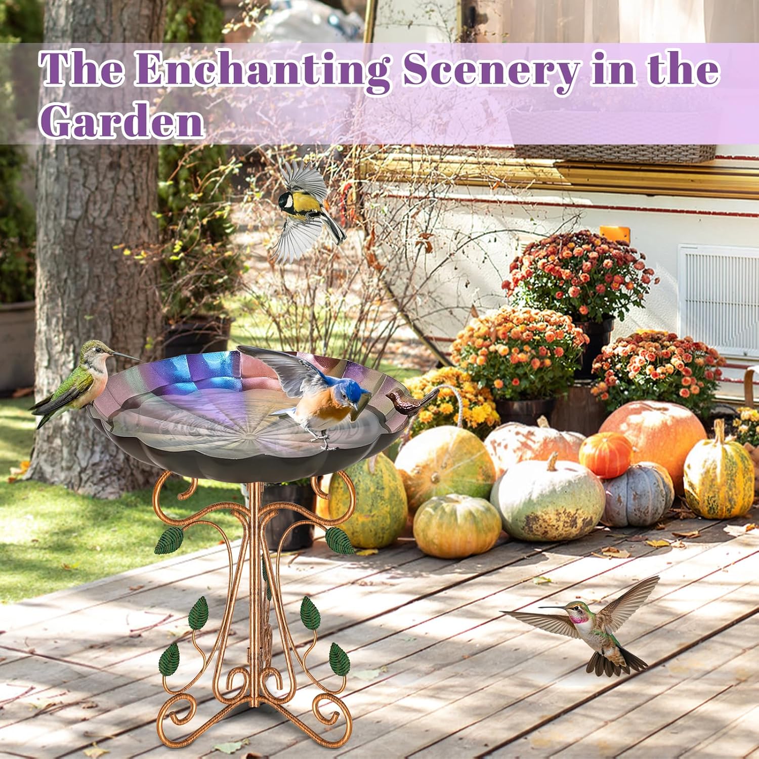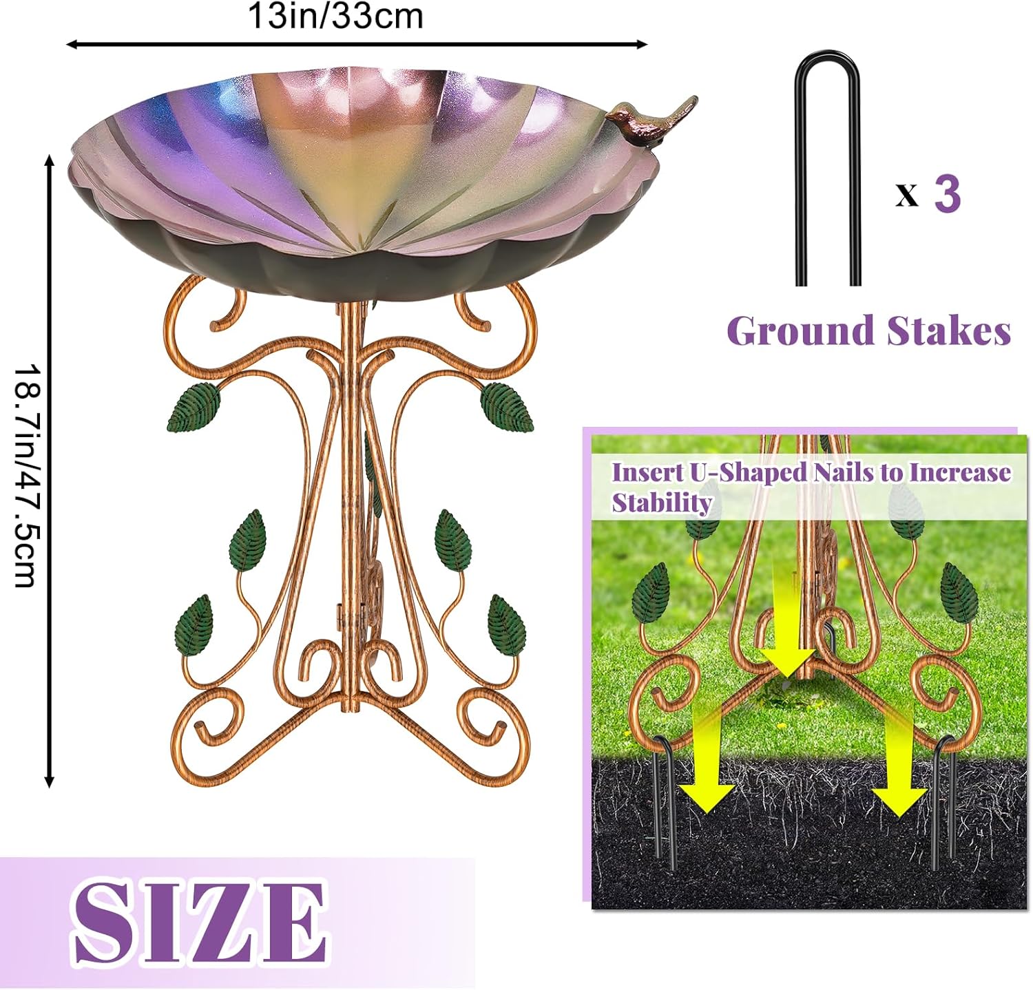 - 【Pedestal Metal Birdbath】 Made of high-quality metal with a rust-proof coating, this outdoor bird bath withstands rain, wind, and sun while remaining sturdy for long-term use.