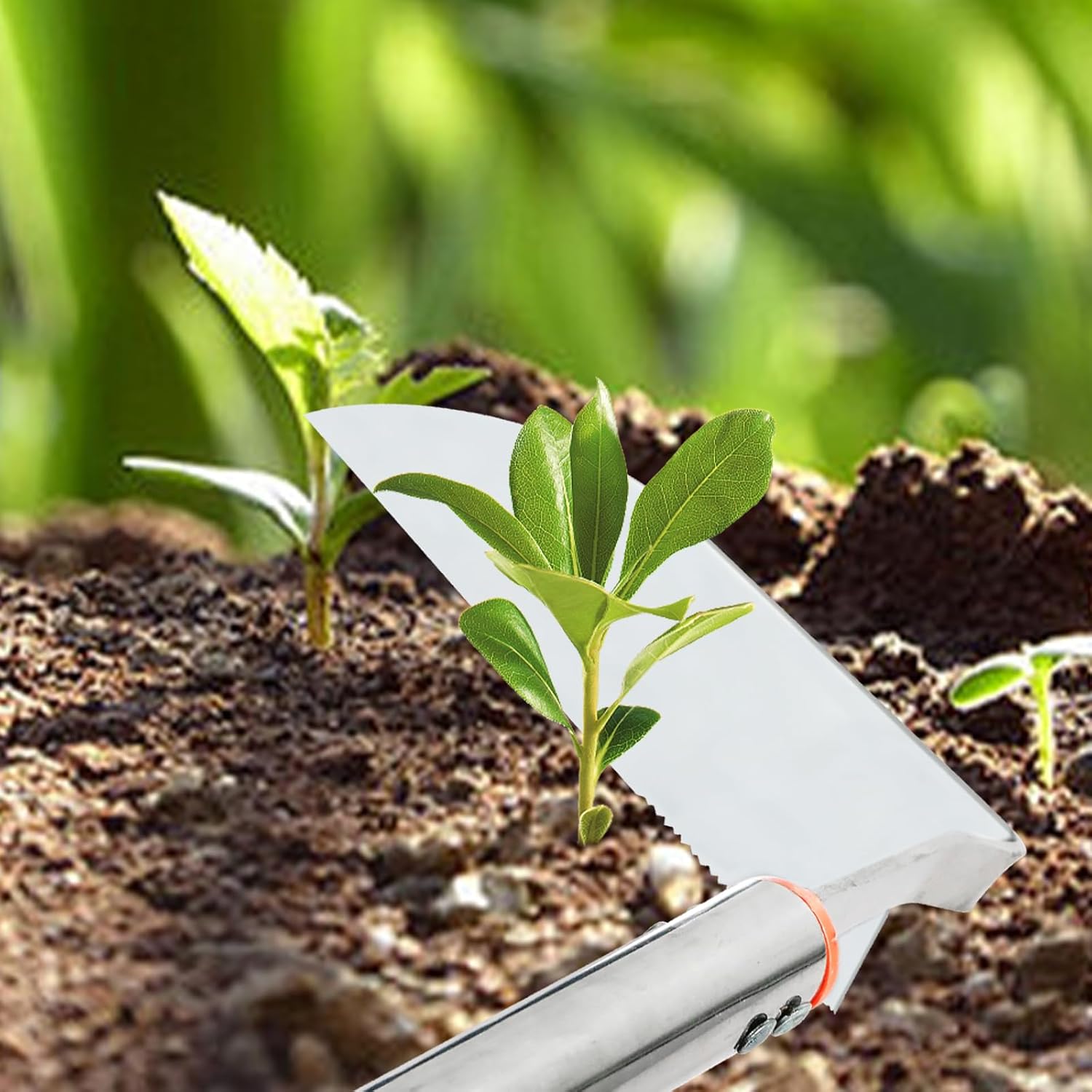 - Long tip Scimitar design: The 6.3-inch flat blade design allows the blade for the hoe to easily cut large areas of difficult weeds and vines, while allowing access to deeper soil.