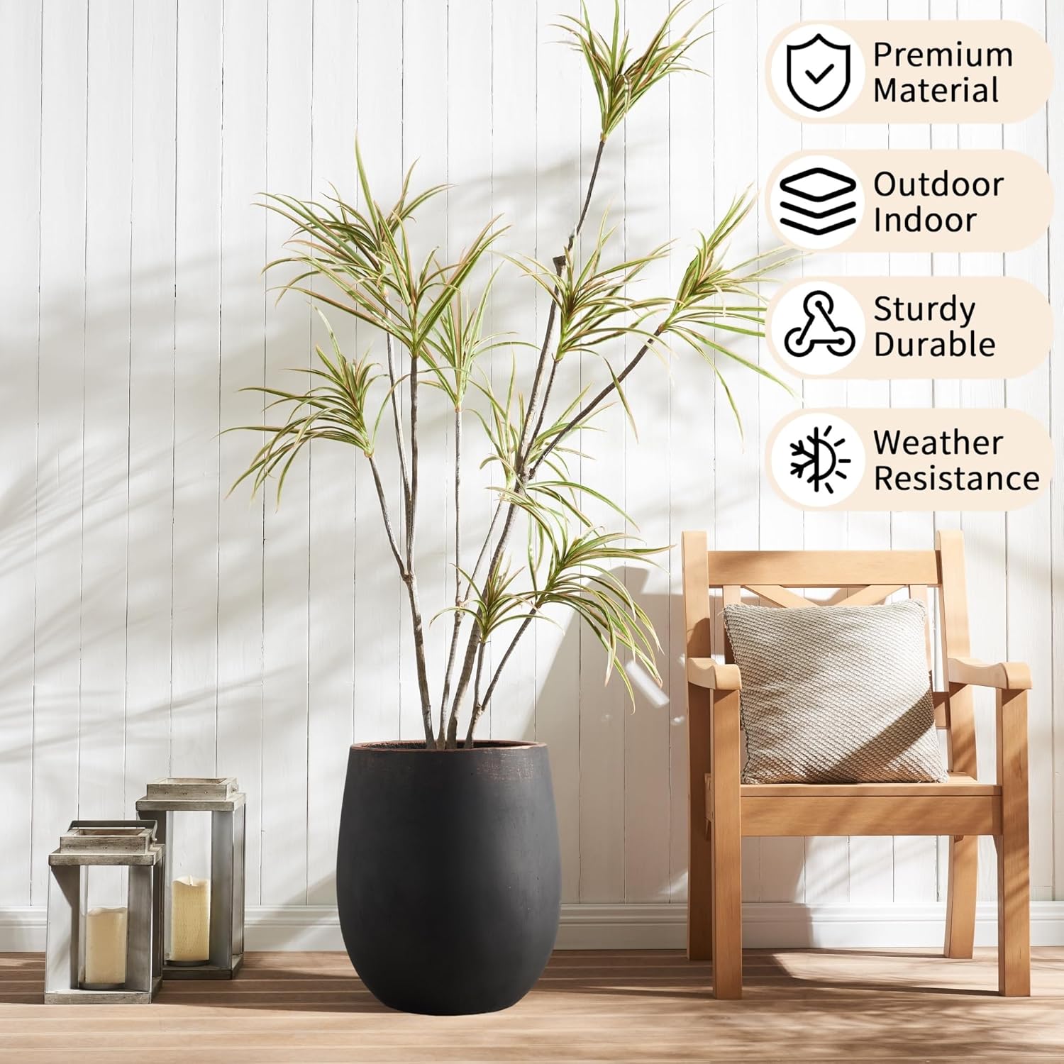 15.5" H Outdoor Concrete Planter, Round Flower Pot with Drainage Hole and Silicone Plug, Plant Container for Garden, Patio, Home, Office, Black, Copper Rim, 1 Pack