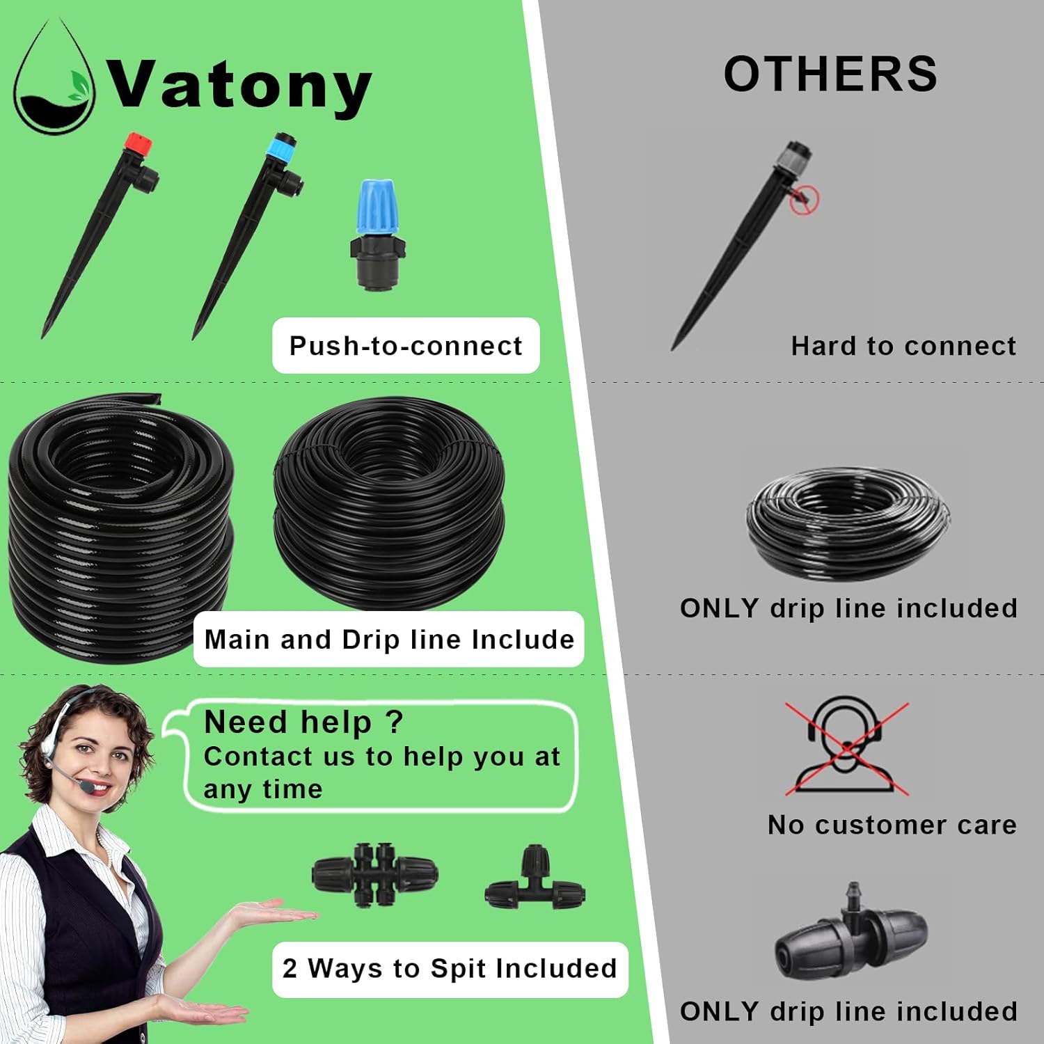 - 🔧 Effortless Installation – No Digging or Plumbing Required: Setting up your irrigation system has never been easier! With detailed installation instructions and a step-by-step video, simply connect the fittings, plug in the tubing, and start watering your plants instantly. Want fully automated watering? Just add an automatic timer (sold separately) and enjoy a hands-free irrigation experience—even while on vacation!