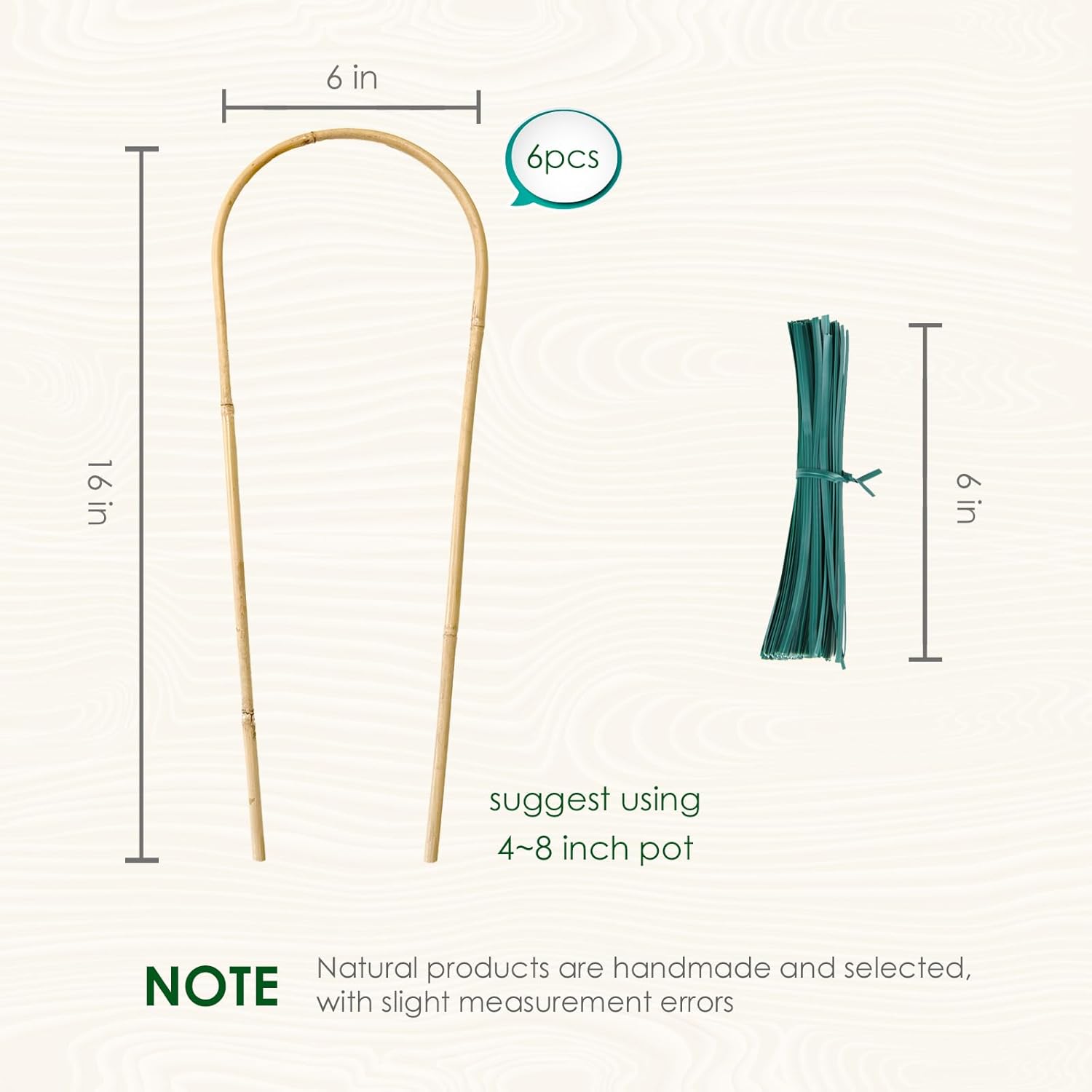 Indoor Plant Trellis for Climbing Plants 16in, 6 Pack Arch Bamboo Trellis for Potted Plants