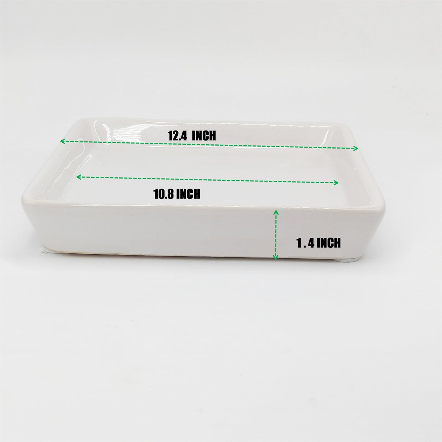Square Plant Saucer 12 Inch 1 Pack,Plant Trays for Pots, White Ceramic Plant Saucers for Indoors Outdoors, Plant Drip Tray 4 6 8 10 12 14 Inch