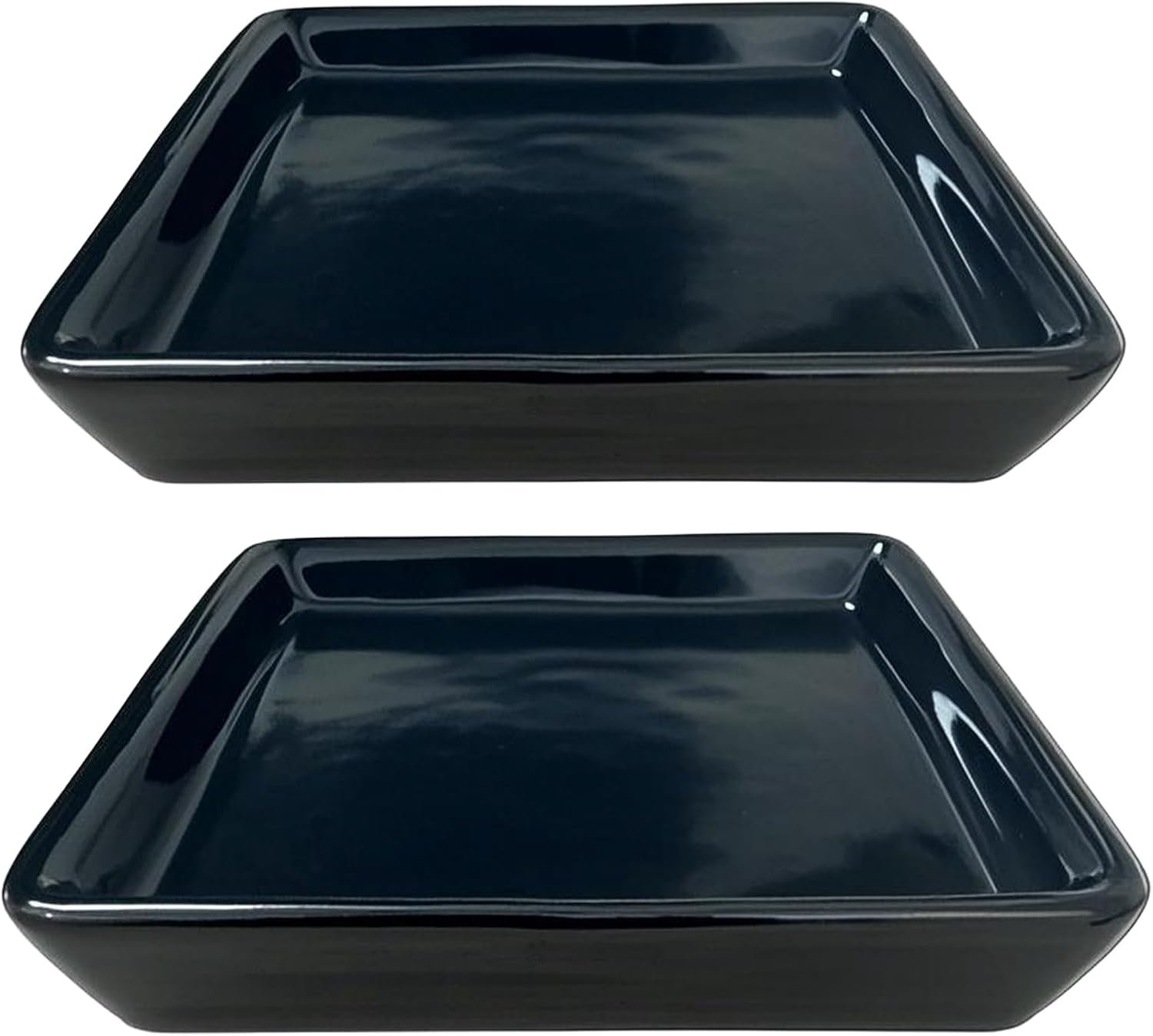 Square Plant Saucer 6 Inch 2 Pack,Plant Trays for Pots, Black Ceramic Plant Saucers for Indoors Outdoors, Plant Drip Tray 4 6 8 10 12 14 Inch