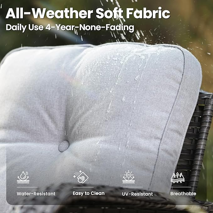 - Rocking Swivel Chairs: The fully rotating patio chairs allows you to 360 degrees swivel and 30 degrees rocking smoothly and silently. The unique forward and backward swing design allows you to easily enjoy a comprehensive comfortable experience, whether it's gathering, reading, or relaxing, you can find the most comfortable angle