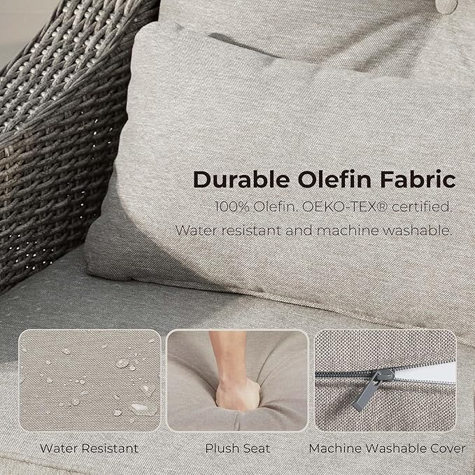 - Easy to Clean: The water-resistant 100% Olefin cushion covers are easy to maintain. Simply spot-clean with mild soap and water for regular care, or machine wash on a cold cycle for deeper cleaning. For protection during harsh weather, store the cushions under cover temporarily. Note: The product’s color may vary under different lighting conditions. For accurate color representation, always refer to the actual product.
