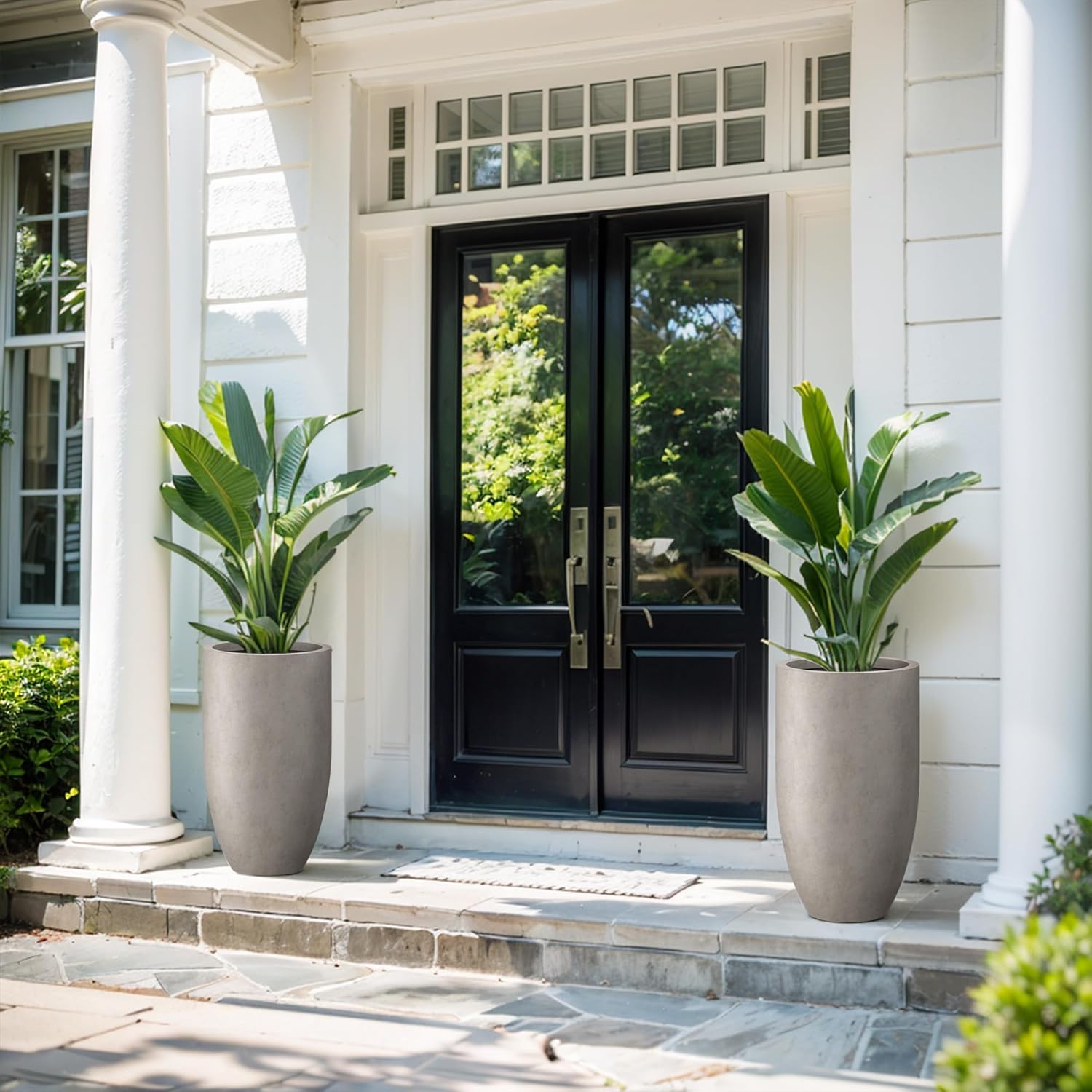 Kante 24 Inch Tall Round Concrete Planter, 2 Pack Large Indoor Outdoor Plant Pots with Drainage Hole and Rubber Plug, Modern Decorative Garden Pots for Home Patio Porch, Weathered Concrete