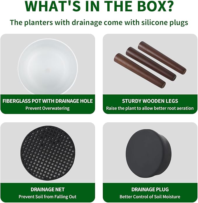 - Planter with Wooden Stand:Comes with a natural wood stand that elevates your plant and adds warmth to any space. Easy to assemble and stylishly functional.