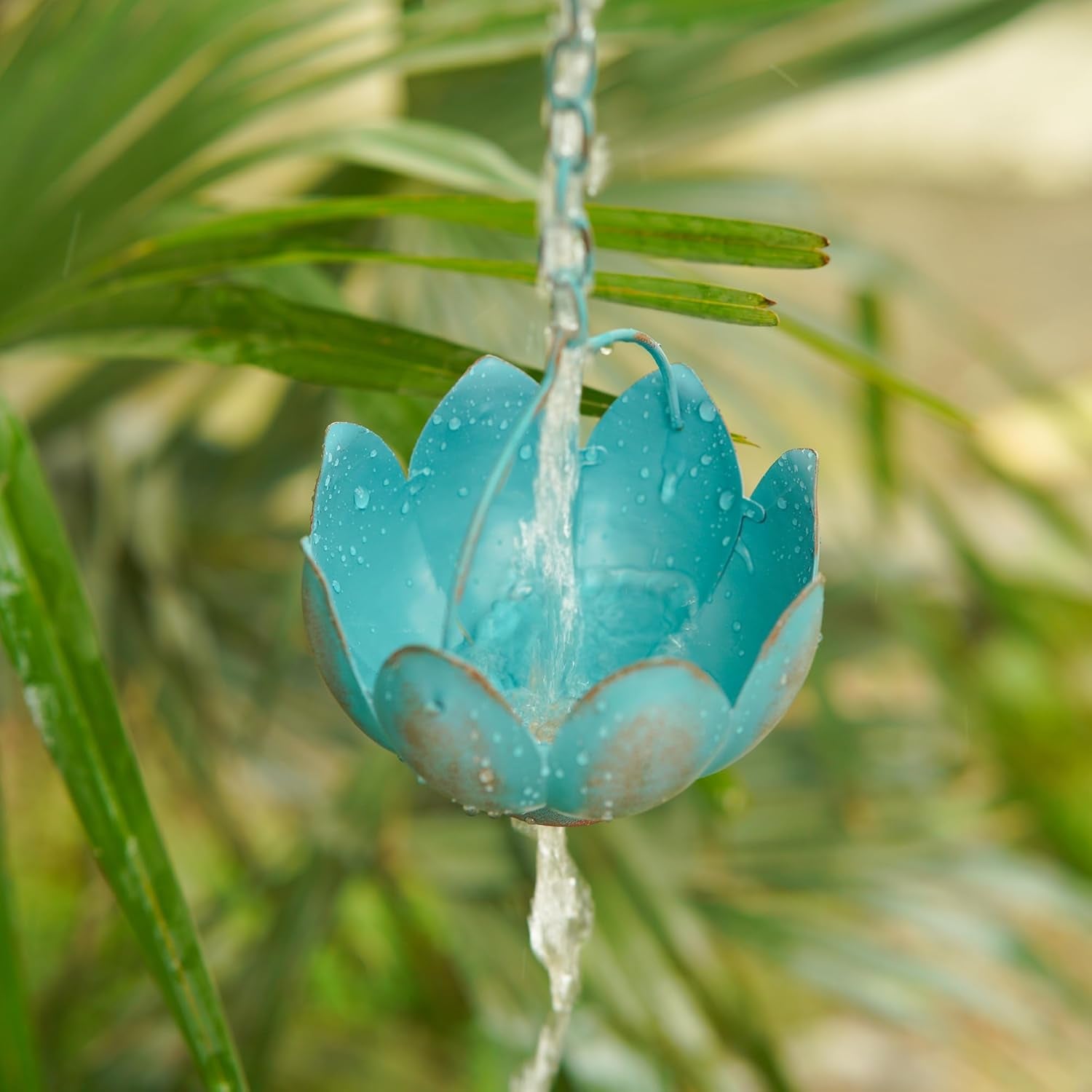 Metal Rain Chain Decoration 8.5FT., Rain Catcher Metal Chain Gutter Downspout 104'' for House Eaves, Garden & Home, Flower Cups Garden Decoration,Lake Blue