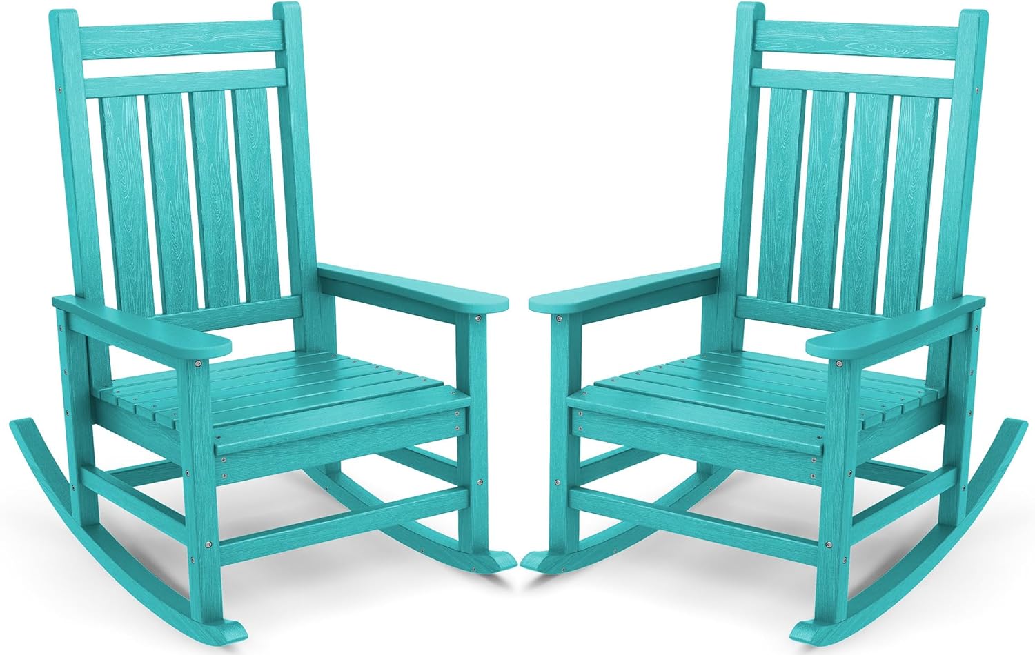 SERWALL Oversized Outdoor Rocking Chair Set of 2, HDPE Rocker for Adults, Patio Rocking Chairs for Porch, Aruba