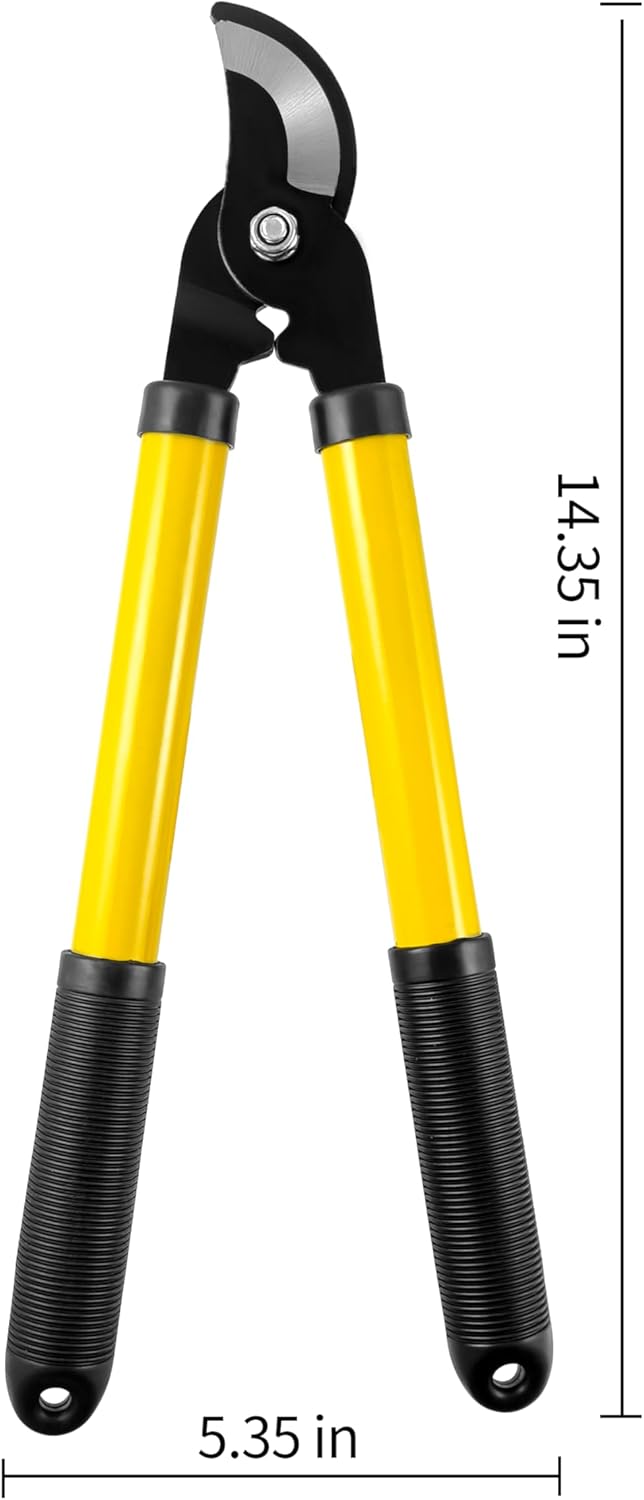 - 🌻POWERFUL 14-INCH LOPPER – Effortless Cutting & Precision – Engineered for clean, smooth cuts, our razor-sharp, hardened steel lopper blades slice through thick branches and tough stems with ease. The long ergonomic handles provide extra leverage to reduce effort and hand strain, making pruning effortless.