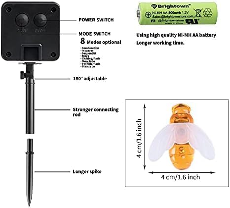 - 【IP65 Waterproof Solar Decor Lights】Bee decor lights are solidly engineered to stand any weather, either rain, sun, or snow. All the components are IP65 waterproof enabled, making it suitable for both indoor and outdoor usage; Hanging it on the trees and flowers of the garden, it can provide vitality for your garden.